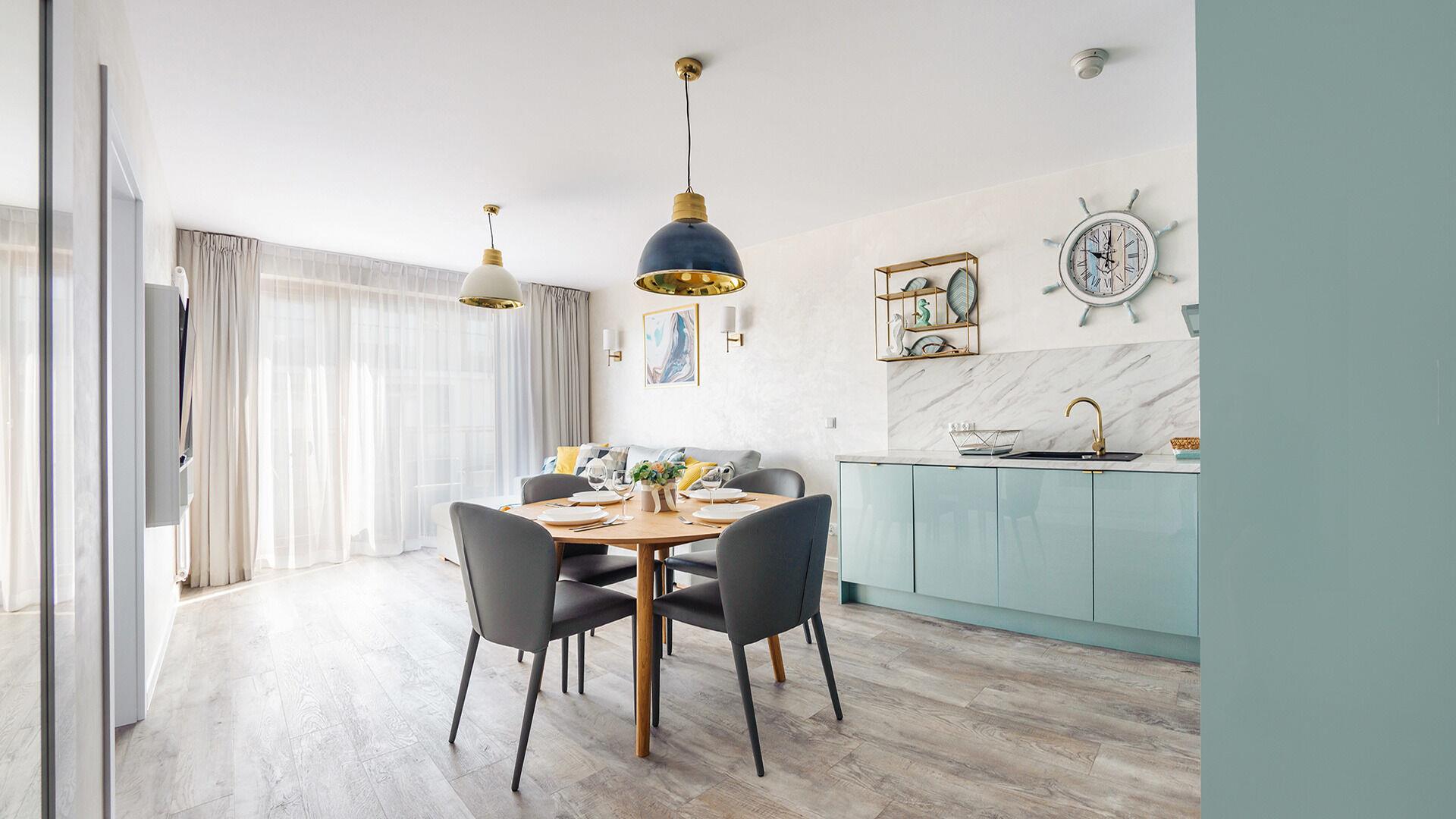 Die Apartments im Resorts Kolobrzeg liegen im ruhigen, westlichen Teil der Stadt, umgeben vom NATURA-2000-Park und nur wenige Minuten vom breiten Weststrand sowie einem Hundestrand entfernt. Die Lage bietet saubere Luft, direkten Kontakt zur Natur und Zugang zu Rad- und Spazierwegen. Die Apartments sind hochwertig ausgestattet und verfügen über voll ausgestattete Küchenzeilen sowie große Terrassen. Auf dem Gelände stehen nummerierte Außenparkplätze und Tiefgaragenplätze gegen Aufpreis zur Verfügung, zudem gibt es einen öffentlichen, kostenpflichtigen Parkplatz vor dem Gebäude. Gästen stehen ein täglich geöffneter Pool sowie eine Sauna zur Verfügung. Kolobrzeg bietet das ganze Jahr über zahlreiche Freizeit- und Kulturangebote sowie eine vielfältige Gastronomie.