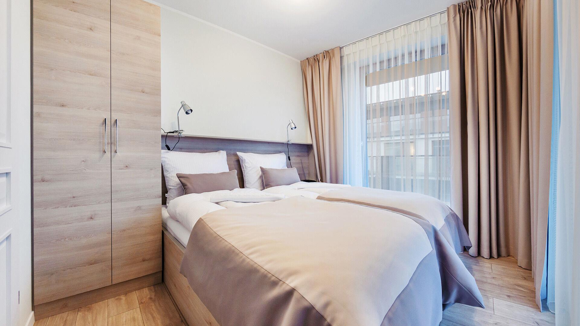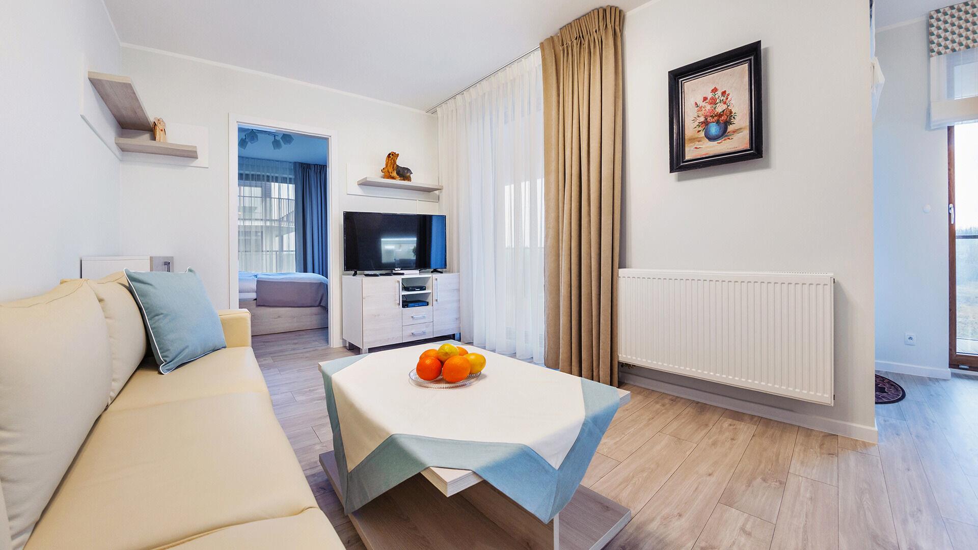 Die Apartments im Resorts Kolobrzeg liegen im ruhigen, westlichen Teil der Stadt, umgeben vom NATURA-2000-Park und nur wenige Minuten vom breiten Weststrand sowie einem Hundestrand entfernt. Die Lage bietet saubere Luft, direkten Kontakt zur Natur und Zugang zu Rad- und Spazierwegen. Die Apartments sind hochwertig ausgestattet und verfügen über voll ausgestattete Küchenzeilen sowie große Terrassen. Auf dem Gelände stehen nummerierte Außenparkplätze und Tiefgaragenplätze gegen Aufpreis zur Verfügung, zudem gibt es einen öffentlichen, kostenpflichtigen Parkplatz vor dem Gebäude. Gästen stehen ein täglich geöffneter Pool sowie eine Sauna zur Verfügung. Kolobrzeg bietet das ganze Jahr über zahlreiche Freizeit- und Kulturangebote sowie eine vielfältige Gastronomie.