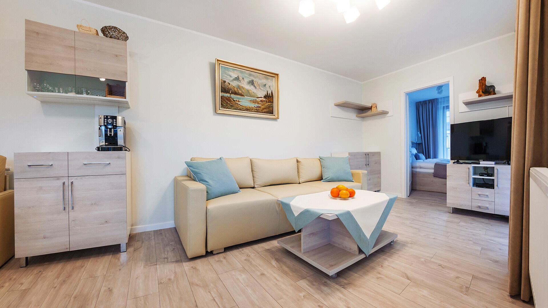 Die Apartments im Objekt Resorts Kolobrzeg befinden sich im westlichen Teil von Kolobrzeg, abseits des städtischen Trubels, umgeben vom Grün des NATURA-2000-Parks. Diese Lage garantiert saubere Luft, malerische Ausblicke und direkten Kontakt zur Natur. Die Plazowa-Straße mit ihren breiten Gehwegen und Radwegen ist ein Teil der R10-Fahrradroute. Ein fünfminütiger Spaziergang über einen direkten Zugang zum Meer reicht aus, um den breiten, sandigen „Weststrand” zu erreichen; ganz in der Nähe befindet sich auch ein Hundestrand. Alle Apartments sind hochwertig ausgestattet und verfügen über funktionale, voll ausgestattete Küchenzeilen sowie geräumige Terrassen mit Blick auf den Innenhof oder das Grün des NATURA-2000-Parks. Vor dem Gebäude gibt es einen öffentlichen, kostenpflichtigen Stadtparkplatz (begrenzte Anzahl an Stellplätzen). Auf dem Gelände stehen ein nummerierter Außenparkplatz sowie Parkplätze in der Tiefgarage zur Verfügung, die den meisten Apartments zugeordnet sind und gegen Aufpreis genutzt werden können. Im Objekt befindet sich ein Schwimmbad, das täglich von 10:00 bis 21:00 Uhr geöffnet ist, sowie eine Sauna, die täglich von 16:00 bis 21:00 Uhr geöffnet ist. Der Pool befindet sich im Gebäude A; aus Gebäude B gibt es keinen direkten Zugang zu Gebäude A.