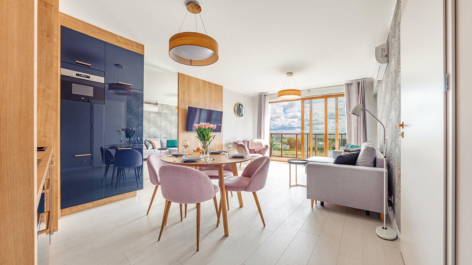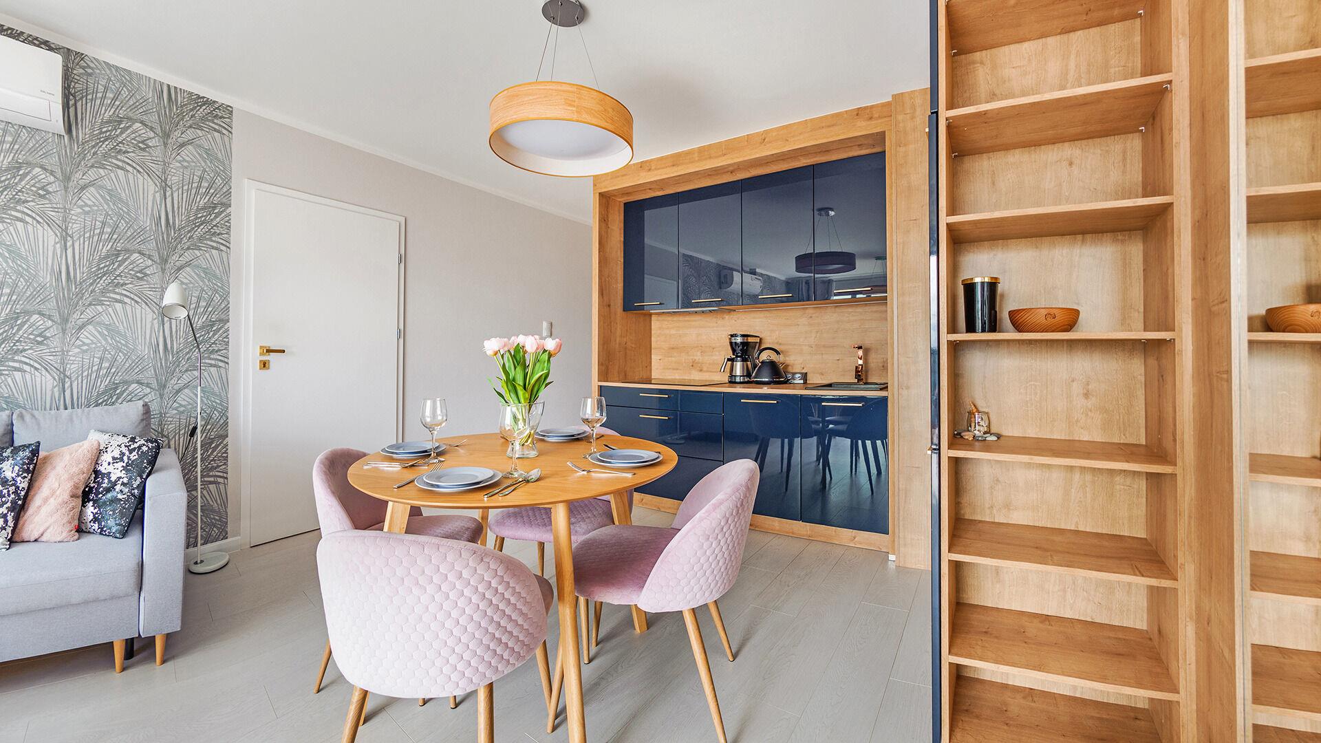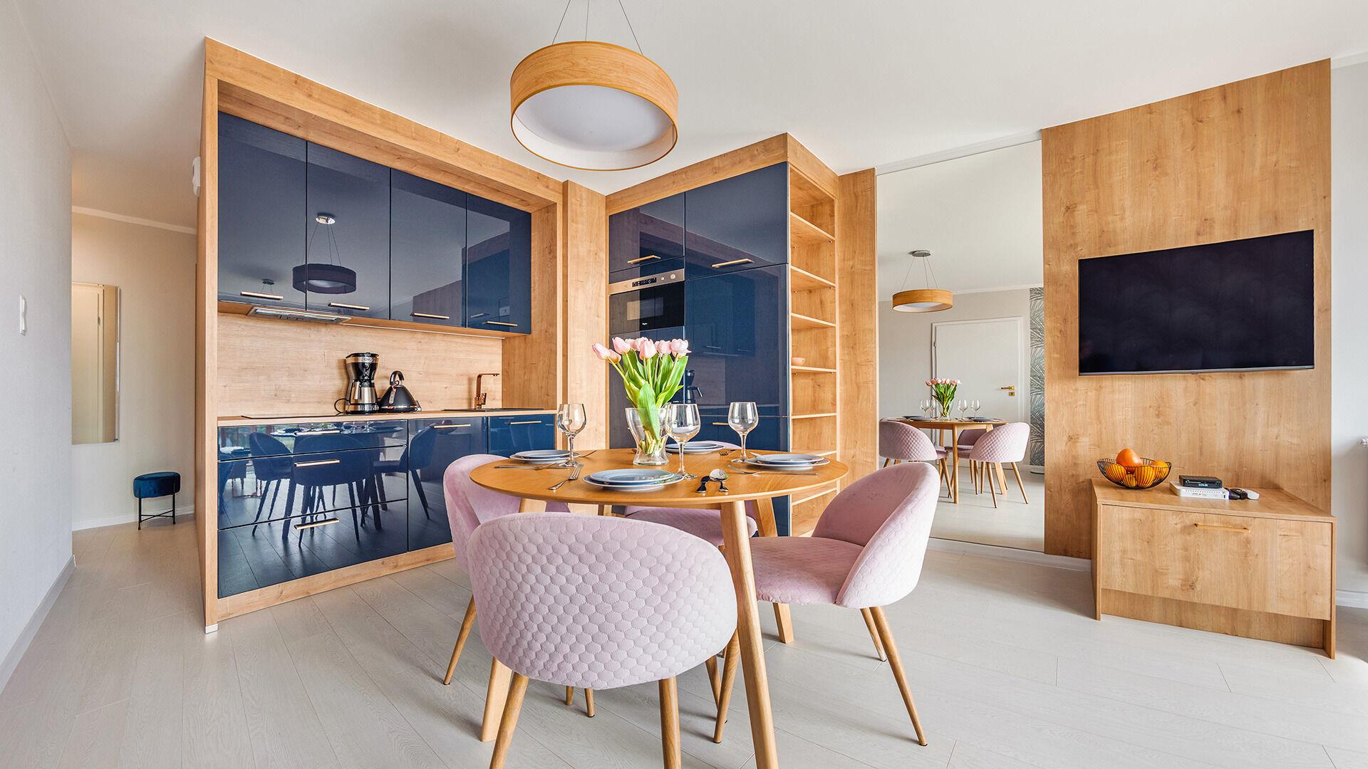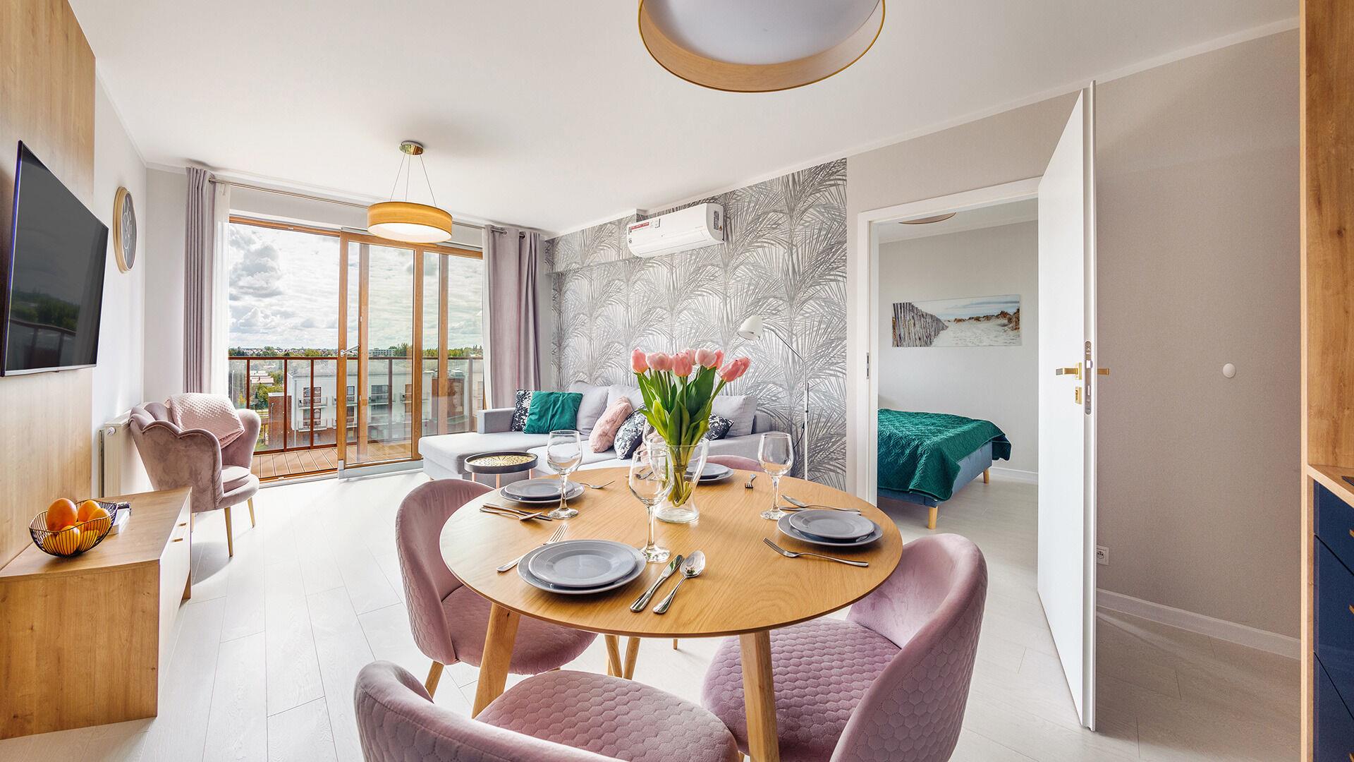 • Haustiere sind in der ausgewählten Wohnung erlaubt. Die Kosten für den Aufenthalt mit einem Haustier betragen 40 PLN pro Tag.