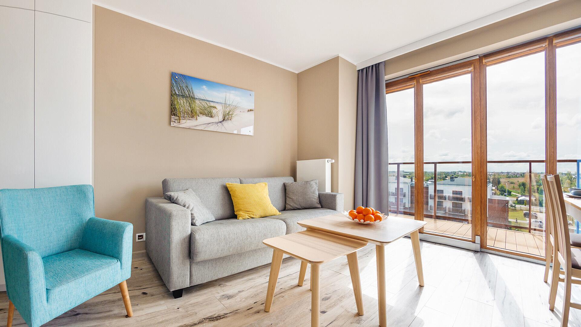 Die Apartments im Objekt Resorts Kolobrzeg befinden sich im westlichen Teil von Kolobrzeg, abseits des städtischen Trubels, umgeben vom Grün des NATURA-2000-Parks. Diese Lage garantiert saubere Luft, malerische Ausblicke und direkten Kontakt zur Natur. Die Plazowa-Straße mit ihren breiten Gehwegen und Radwegen ist ein Teil der R10-Fahrradroute. Ein fünfminütiger Spaziergang über einen direkten Zugang zum Meer reicht aus, um den breiten, sandigen „Weststrand” zu erreichen; ganz in der Nähe befindet sich auch ein Hundestrand. Alle Apartments sind hochwertig ausgestattet und verfügen über funktionale, voll ausgestattete Küchenzeilen sowie geräumige Terrassen mit Blick auf den Innenhof oder das Grün des NATURA-2000-Parks. Vor dem Gebäude gibt es einen öffentlichen, kostenpflichtigen Stadtparkplatz (begrenzte Anzahl an Stellplätzen). Auf dem Gelände stehen ein nummerierter Außenparkplatz sowie Parkplätze in der Tiefgarage zur Verfügung, die den meisten Apartments zugeordnet sind und gegen Aufpreis genutzt werden können. Im Objekt befindet sich ein Schwimmbad, das täglich von 10:00 bis 21:00 Uhr geöffnet ist, sowie eine Sauna, die täglich von 16:00 bis 21:00 Uhr geöffnet ist. Der Pool befindet sich im Gebäude A; aus Gebäude B gibt es keinen direkten Zugang zu Gebäude A.