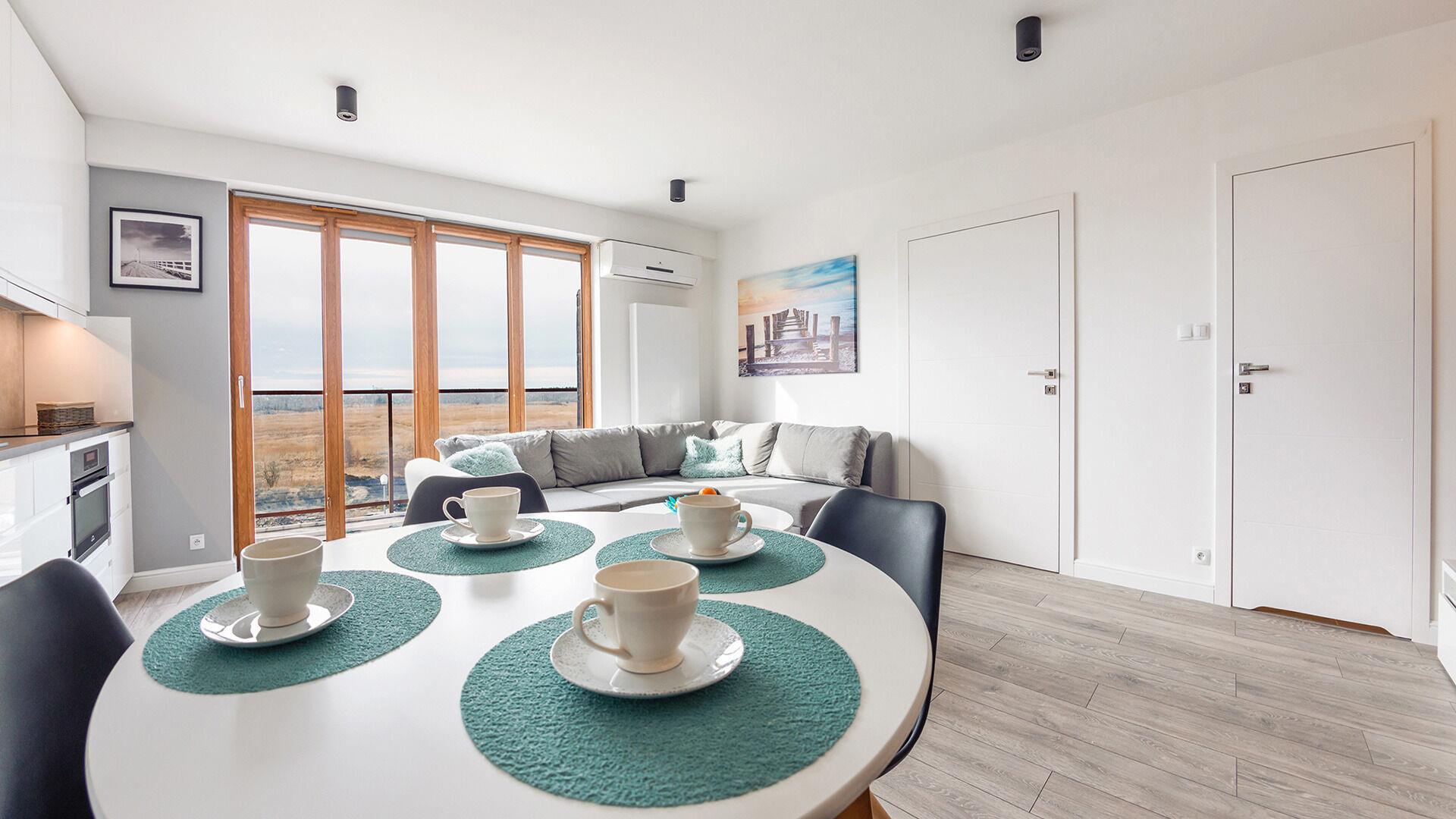 Die Apartments im Resorts Kolobrzeg liegen im ruhigen, westlichen Teil der Stadt, umgeben vom NATURA-2000-Park und nur wenige Minuten vom breiten Weststrand sowie einem Hundestrand entfernt. Die Lage bietet saubere Luft, direkten Kontakt zur Natur und Zugang zu Rad- und Spazierwegen. Die Apartments sind hochwertig ausgestattet und verfügen über voll ausgestattete Küchenzeilen sowie große Terrassen. Auf dem Gelände stehen nummerierte Außenparkplätze und Tiefgaragenplätze gegen Aufpreis zur Verfügung, zudem gibt es einen öffentlichen, kostenpflichtigen Parkplatz vor dem Gebäude. Gästen stehen ein täglich geöffneter Pool sowie eine Sauna zur Verfügung. Kolobrzeg bietet das ganze Jahr über zahlreiche Freizeit- und Kulturangebote sowie eine vielfältige Gastronomie.
