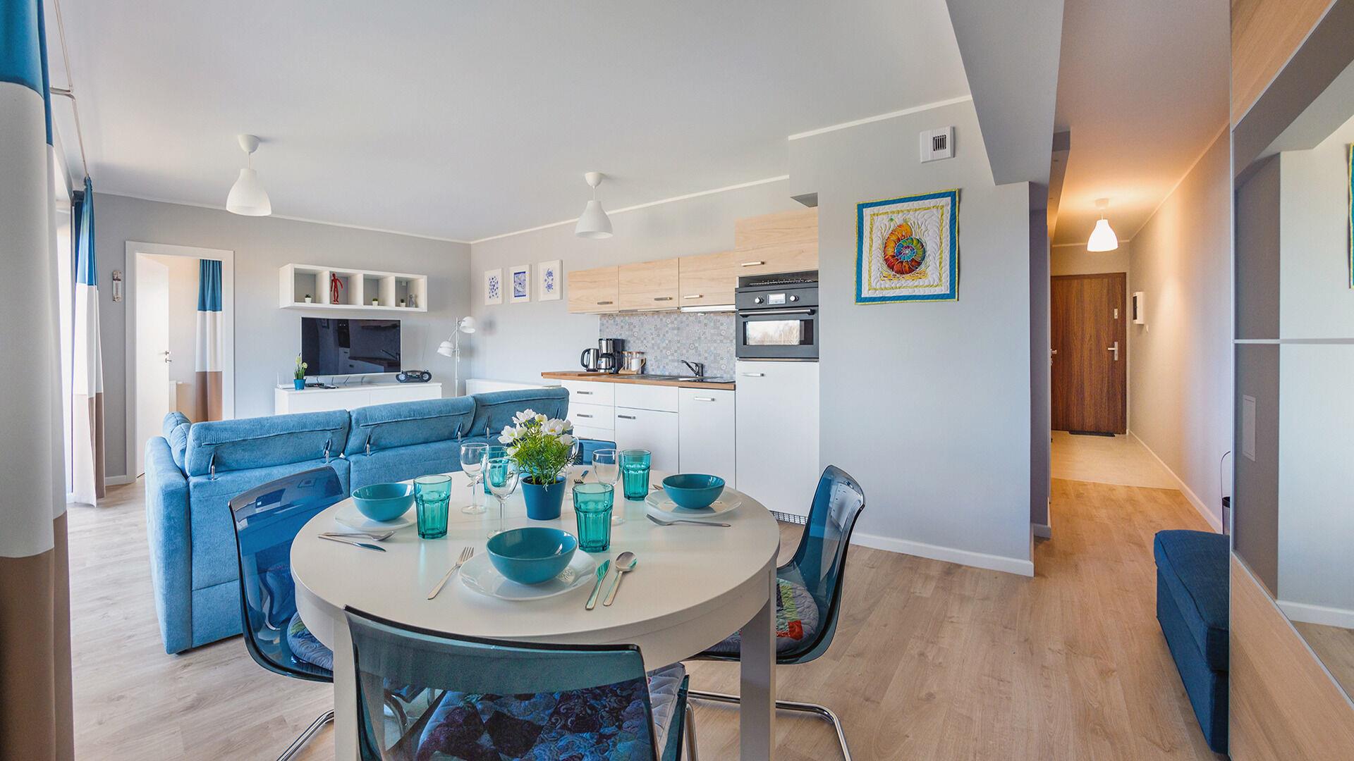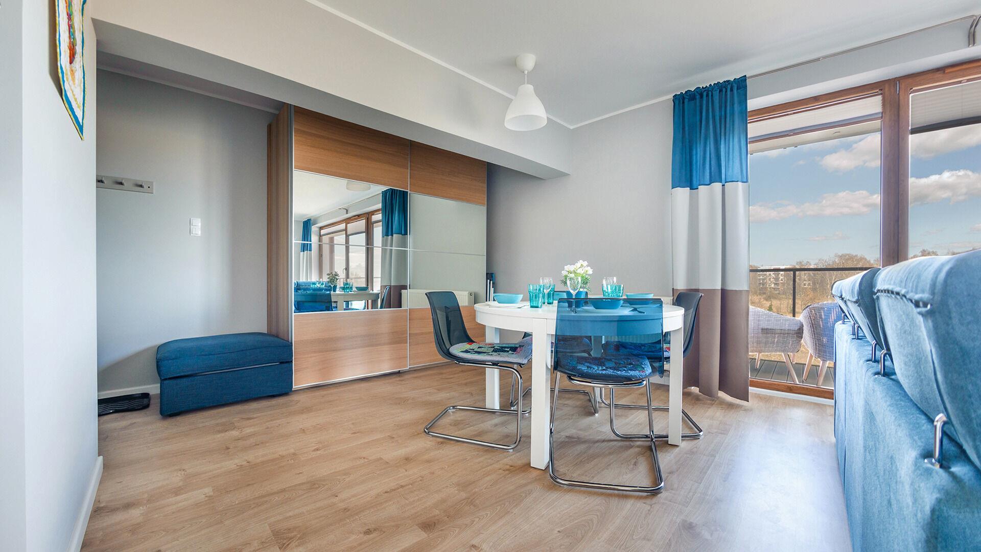 Die Apartments im Resorts Kolobrzeg liegen im ruhigen, westlichen Teil der Stadt, umgeben vom NATURA-2000-Park und nur wenige Minuten vom breiten Weststrand sowie einem Hundestrand entfernt. Die Lage bietet saubere Luft, direkten Kontakt zur Natur und Zugang zu Rad- und Spazierwegen. Die Apartments sind hochwertig ausgestattet und verfügen über voll ausgestattete Küchenzeilen sowie große Terrassen. Auf dem Gelände stehen nummerierte Außenparkplätze und Tiefgaragenplätze gegen Aufpreis zur Verfügung, zudem gibt es einen öffentlichen, kostenpflichtigen Parkplatz vor dem Gebäude. Gästen stehen ein täglich geöffneter Pool sowie eine Sauna zur Verfügung. Kolobrzeg bietet das ganze Jahr über zahlreiche Freizeit- und Kulturangebote sowie eine vielfältige Gastronomie.
