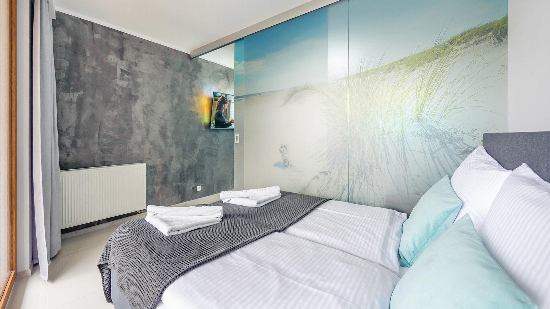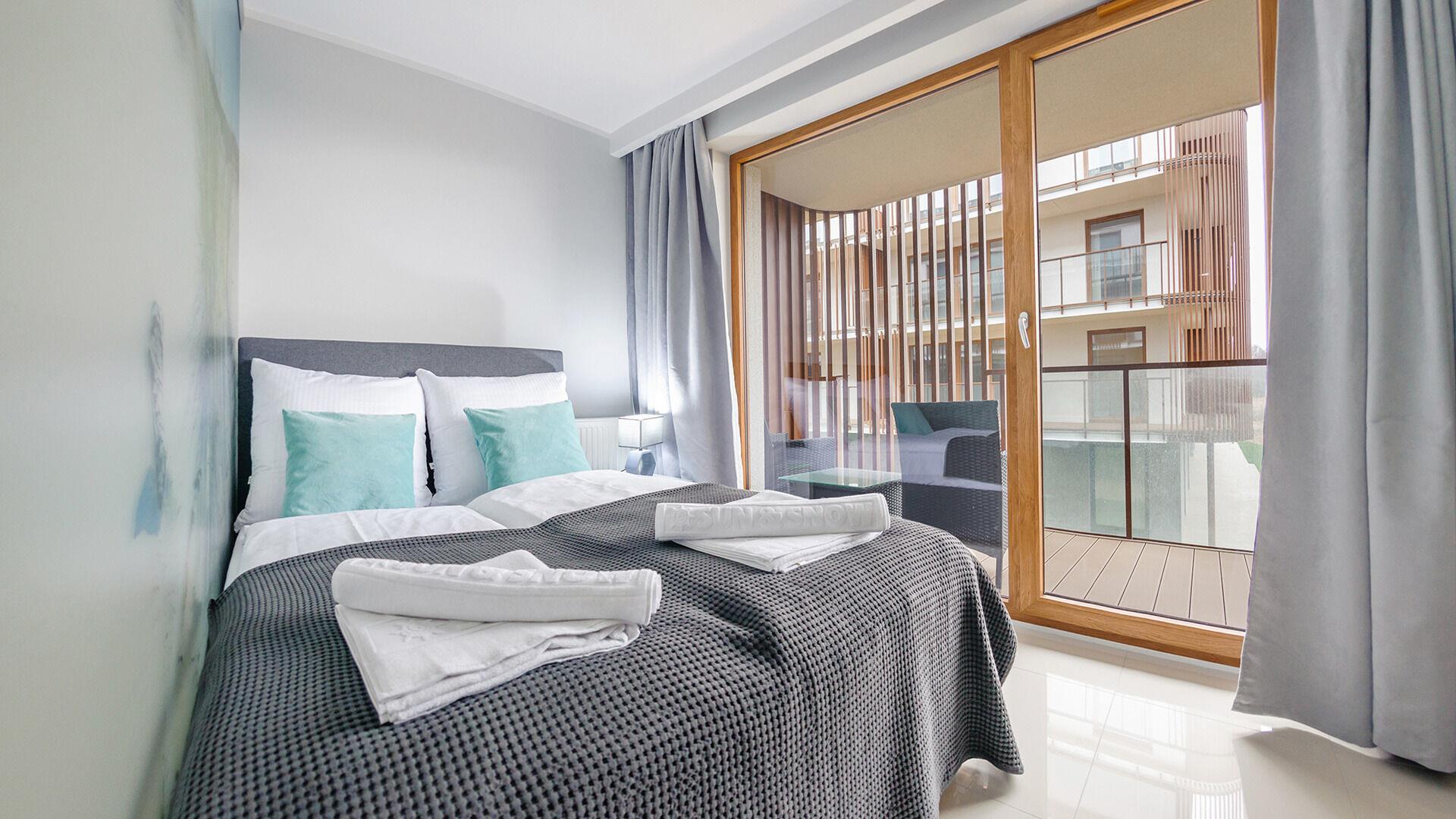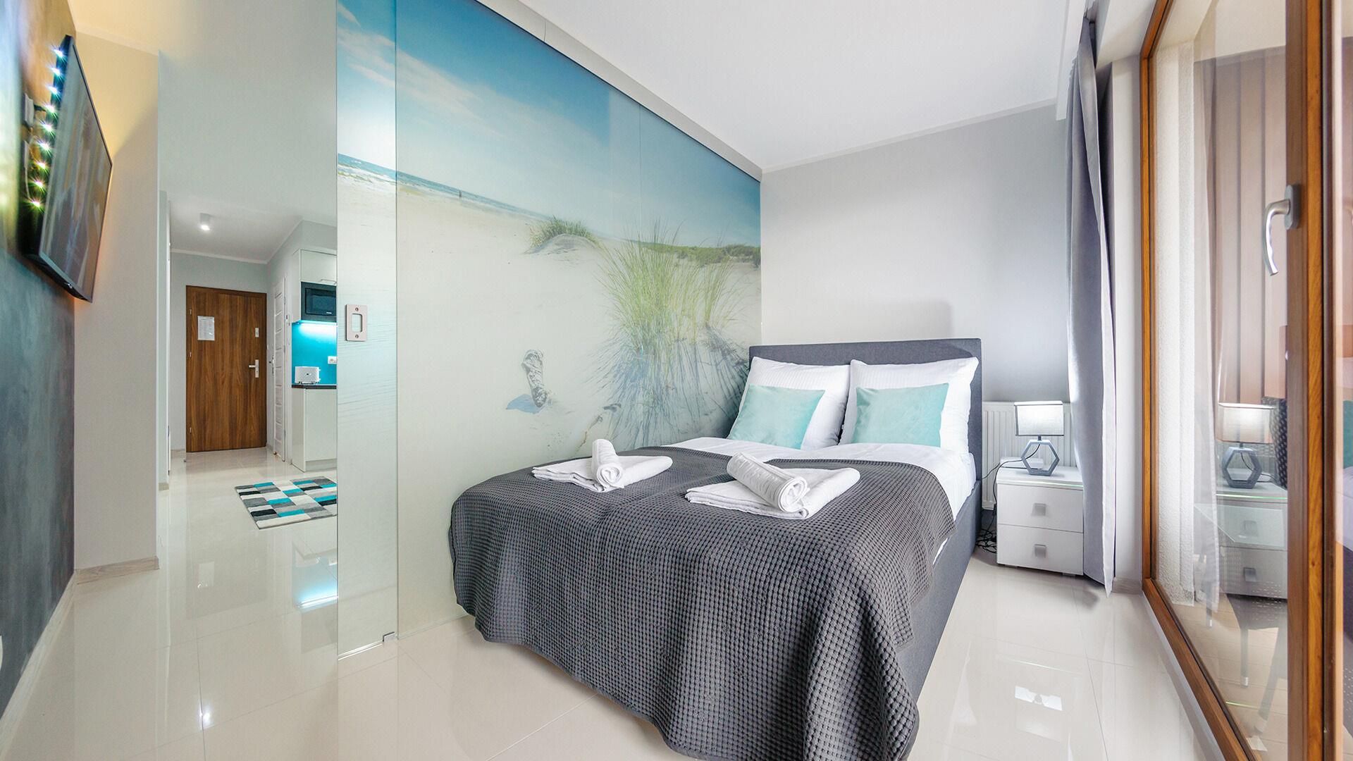 Die Apartments im Resorts Kolobrzeg liegen im ruhigen, westlichen Teil der Stadt, umgeben vom NATURA-2000-Park und nur wenige Minuten vom breiten Weststrand sowie einem Hundestrand entfernt. Die Lage bietet saubere Luft, direkten Kontakt zur Natur und Zugang zu Rad- und Spazierwegen. Die Apartments sind hochwertig ausgestattet und verfügen über voll ausgestattete Küchenzeilen sowie große Terrassen. Auf dem Gelände stehen nummerierte Außenparkplätze und Tiefgaragenplätze gegen Aufpreis zur Verfügung, zudem gibt es einen öffentlichen, kostenpflichtigen Parkplatz vor dem Gebäude. Gästen stehen ein täglich geöffneter Pool sowie eine Sauna zur Verfügung. Kolobrzeg bietet das ganze Jahr über zahlreiche Freizeit- und Kulturangebote sowie eine vielfältige Gastronomie.