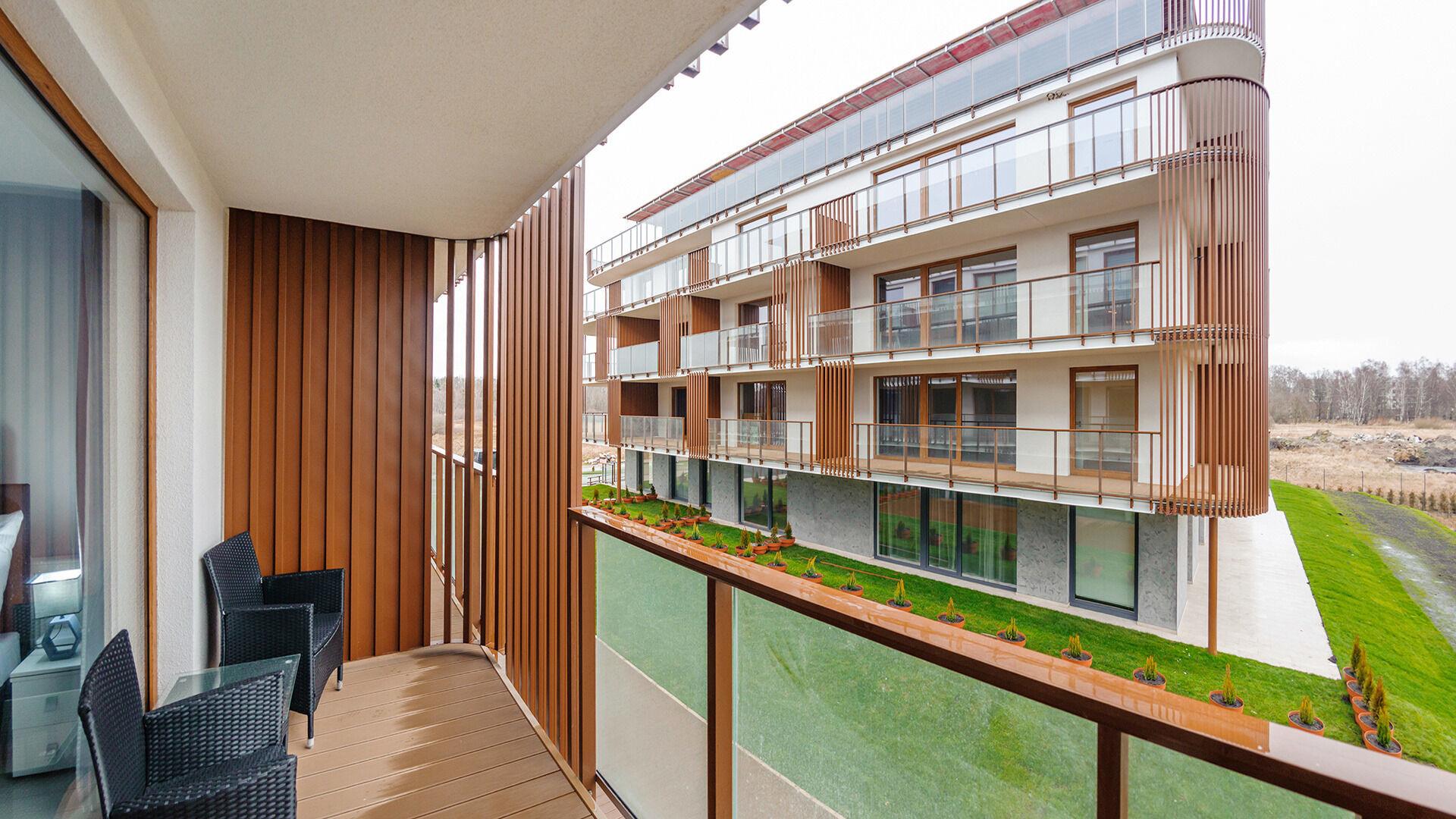 Die Apartments im Objekt Resorts Kolobrzeg befinden sich im westlichen Teil von Kolobrzeg, abseits des städtischen Trubels, umgeben vom Grün des NATURA-2000-Parks. Diese Lage garantiert saubere Luft, malerische Ausblicke und direkten Kontakt zur Natur. Die Plazowa-Straße mit ihren breiten Gehwegen und Radwegen ist ein Teil der R10-Fahrradroute. Ein fünfminütiger Spaziergang über einen direkten Zugang zum Meer reicht aus, um den breiten, sandigen „Weststrand” zu erreichen; ganz in der Nähe befindet sich auch ein Hundestrand. Alle Apartments sind hochwertig ausgestattet und verfügen über funktionale, voll ausgestattete Küchenzeilen sowie geräumige Terrassen mit Blick auf den Innenhof oder das Grün des NATURA-2000-Parks. Vor dem Gebäude gibt es einen öffentlichen, kostenpflichtigen Stadtparkplatz (begrenzte Anzahl an Stellplätzen). Auf dem Gelände stehen ein nummerierter Außenparkplatz sowie Parkplätze in der Tiefgarage zur Verfügung, die den meisten Apartments zugeordnet sind und gegen Aufpreis genutzt werden können. Im Objekt befindet sich ein Schwimmbad, das täglich von 10:00 bis 21:00 Uhr geöffnet ist, sowie eine Sauna, die täglich von 16:00 bis 21:00 Uhr geöffnet ist. Der Pool befindet sich im Gebäude A; aus Gebäude B gibt es keinen direkten Zugang zu Gebäude A.