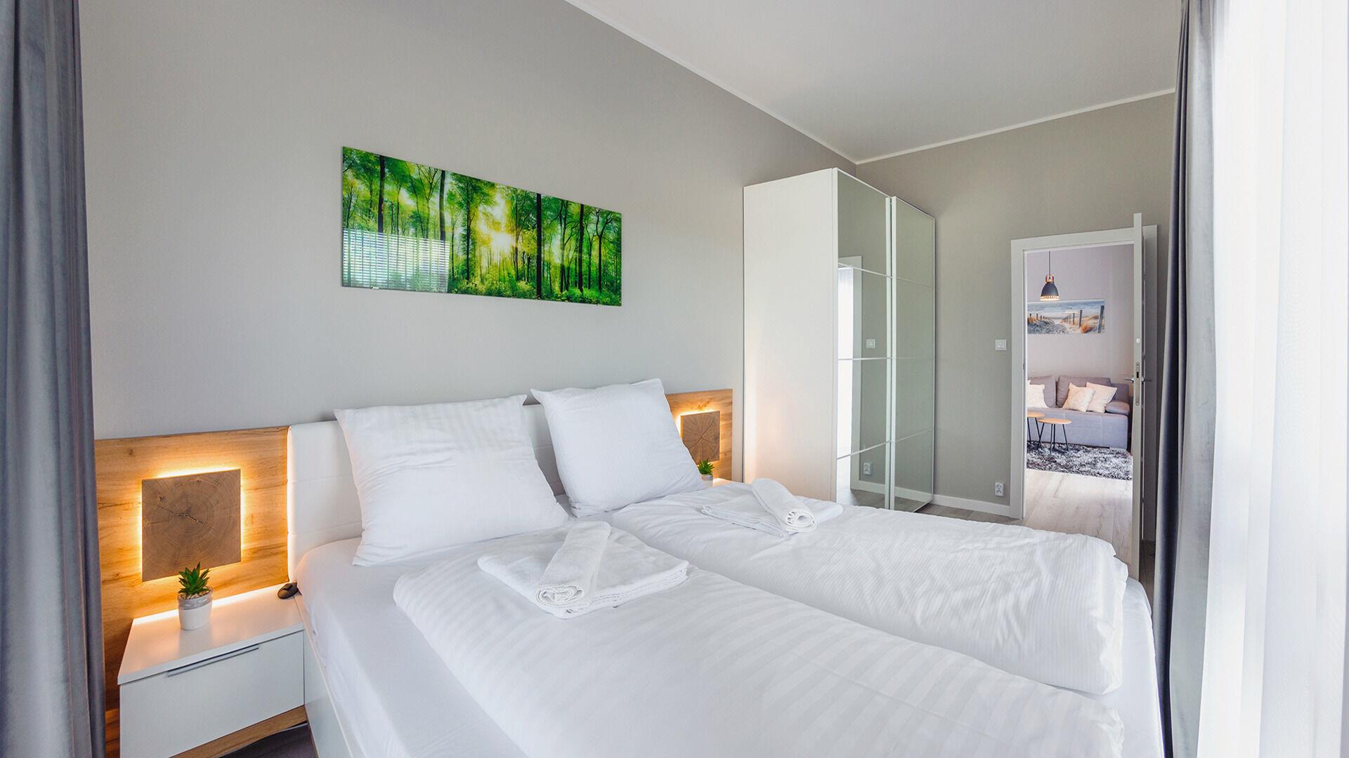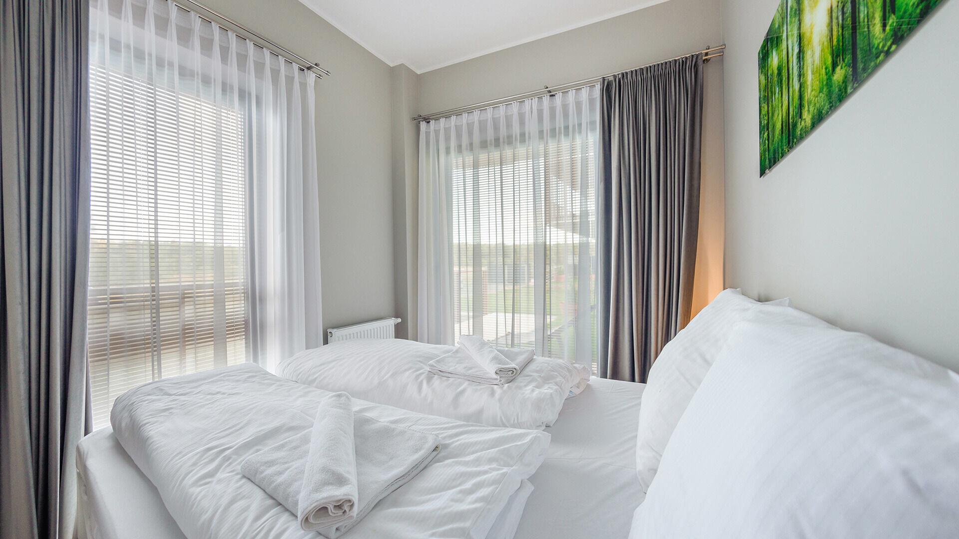 Die Apartments im Resorts Kolobrzeg liegen im ruhigen, westlichen Teil der Stadt, umgeben vom NATURA-2000-Park und nur wenige Minuten vom breiten Weststrand sowie einem Hundestrand entfernt. Die Lage bietet saubere Luft, direkten Kontakt zur Natur und Zugang zu Rad- und Spazierwegen. Die Apartments sind hochwertig ausgestattet und verfügen über voll ausgestattete Küchenzeilen sowie große Terrassen. Auf dem Gelände stehen nummerierte Außenparkplätze und Tiefgaragenplätze gegen Aufpreis zur Verfügung, zudem gibt es einen öffentlichen, kostenpflichtigen Parkplatz vor dem Gebäude. Gästen stehen ein täglich geöffneter Pool sowie eine Sauna zur Verfügung. Kolobrzeg bietet das ganze Jahr über zahlreiche Freizeit- und Kulturangebote sowie eine vielfältige Gastronomie.