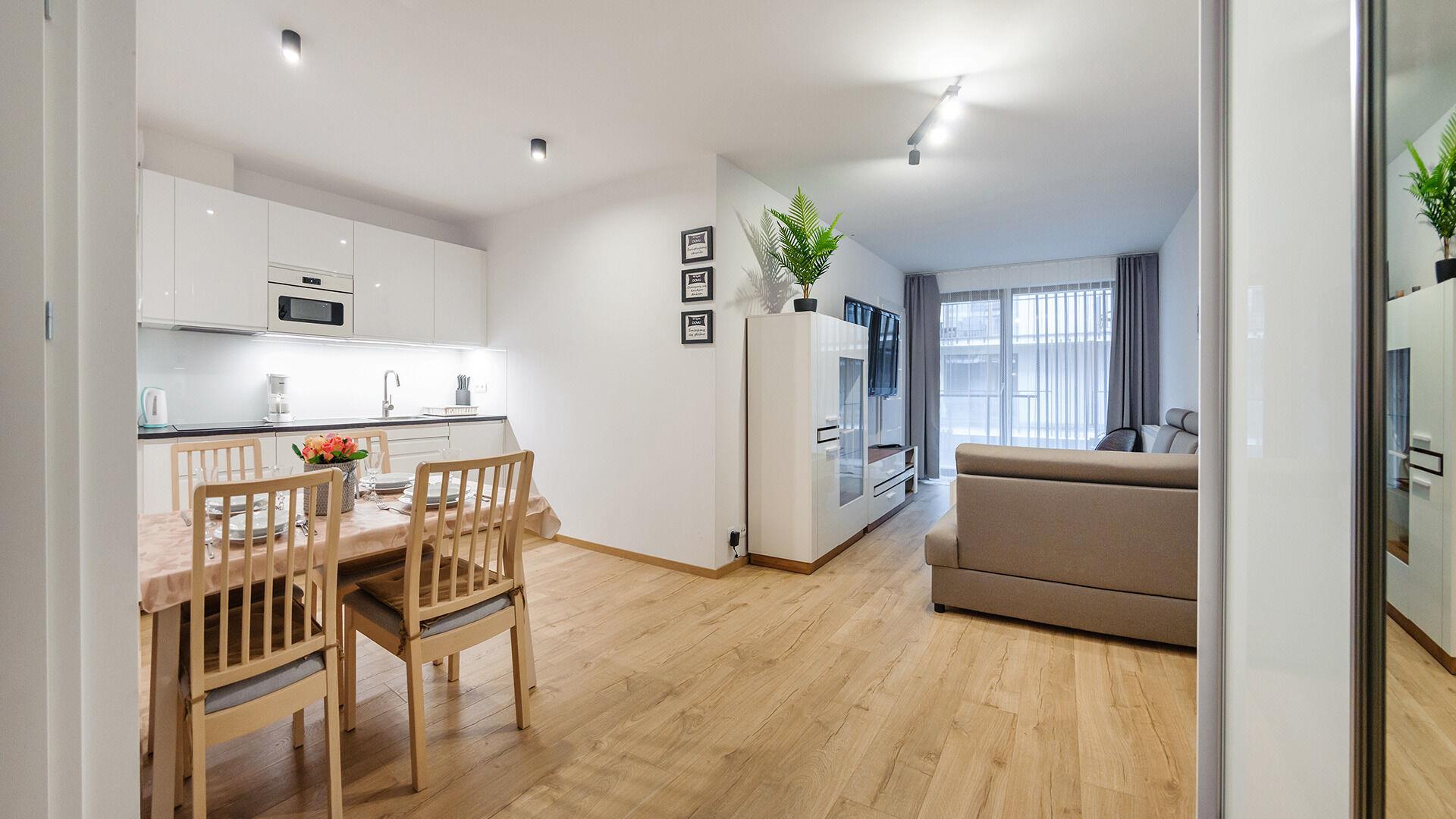Die Apartments im Resorts Kolobrzeg liegen im ruhigen, westlichen Teil der Stadt, umgeben vom NATURA-2000-Park und nur wenige Minuten vom breiten Weststrand sowie einem Hundestrand entfernt. Die Lage bietet saubere Luft, direkten Kontakt zur Natur und Zugang zu Rad- und Spazierwegen. Die Apartments sind hochwertig ausgestattet und verfügen über voll ausgestattete Küchenzeilen sowie große Terrassen. Auf dem Gelände stehen nummerierte Außenparkplätze und Tiefgaragenplätze gegen Aufpreis zur Verfügung, zudem gibt es einen öffentlichen, kostenpflichtigen Parkplatz vor dem Gebäude. Gästen stehen ein täglich geöffneter Pool sowie eine Sauna zur Verfügung. Kolobrzeg bietet das ganze Jahr über zahlreiche Freizeit- und Kulturangebote sowie eine vielfältige Gastronomie.