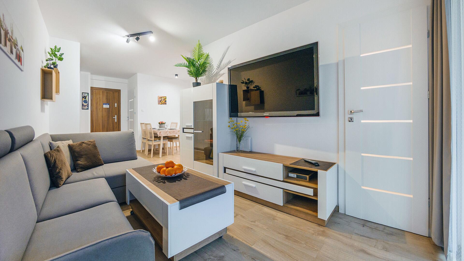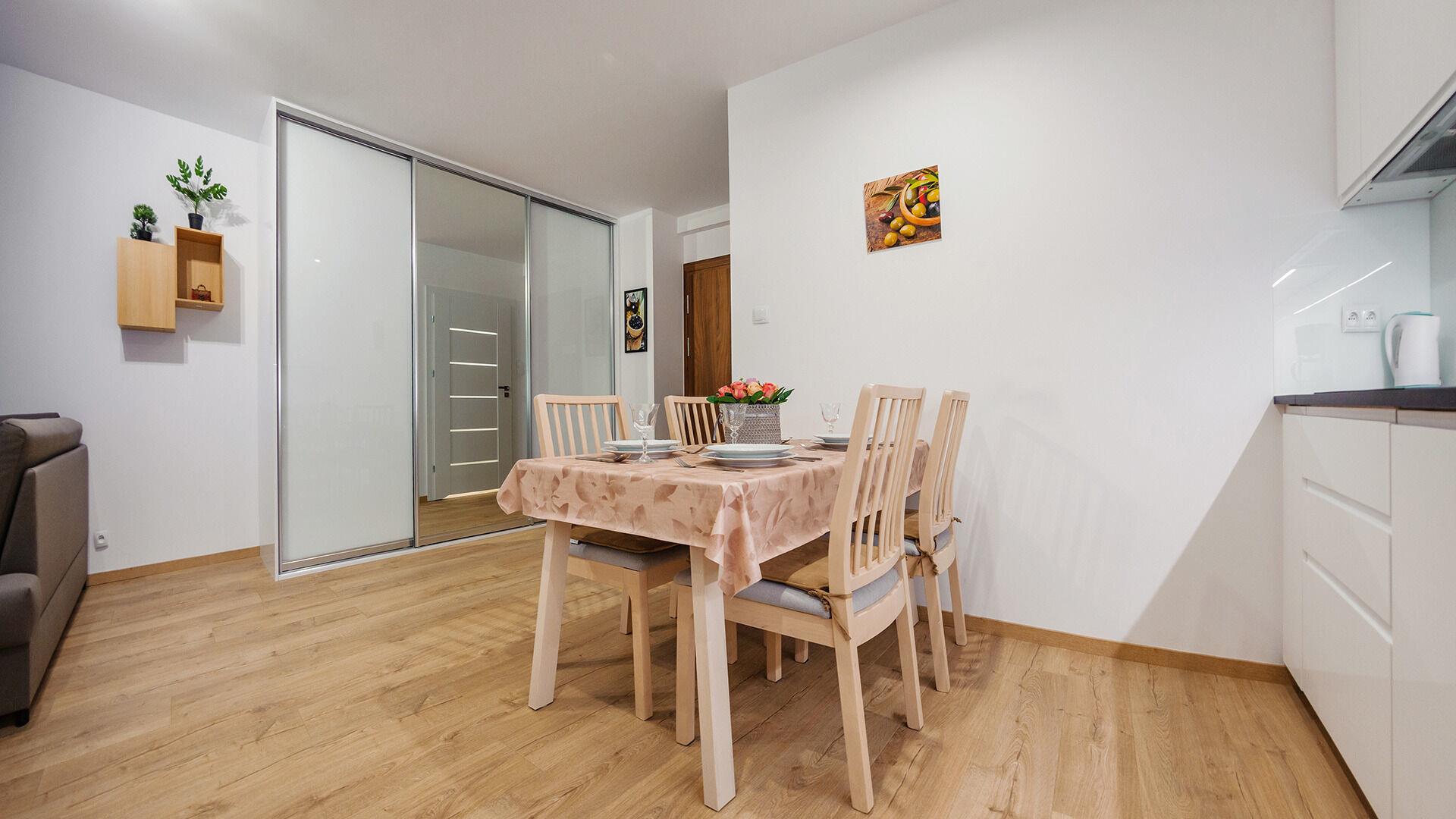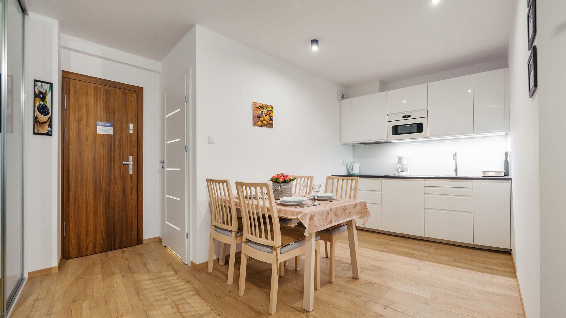 Die Apartments im Objekt Resorts Kolobrzeg befinden sich im westlichen Teil von Kolobrzeg, abseits des städtischen Trubels, umgeben vom Grün des NATURA-2000-Parks. Diese Lage garantiert saubere Luft, malerische Ausblicke und direkten Kontakt zur Natur. Die Plazowa-Straße mit ihren breiten Gehwegen und Radwegen ist ein Teil der R10-Fahrradroute. Ein fünfminütiger Spaziergang über einen direkten Zugang zum Meer reicht aus, um den breiten, sandigen „Weststrand” zu erreichen; ganz in der Nähe befindet sich auch ein Hundestrand. Alle Apartments sind hochwertig ausgestattet und verfügen über funktionale, voll ausgestattete Küchenzeilen sowie geräumige Terrassen mit Blick auf den Innenhof oder das Grün des NATURA-2000-Parks. Vor dem Gebäude gibt es einen öffentlichen, kostenpflichtigen Stadtparkplatz (begrenzte Anzahl an Stellplätzen). Auf dem Gelände stehen ein nummerierter Außenparkplatz sowie Parkplätze in der Tiefgarage zur Verfügung, die den meisten Apartments zugeordnet sind und gegen Aufpreis genutzt werden können. Im Objekt befindet sich ein Schwimmbad, das täglich von 10:00 bis 21:00 Uhr geöffnet ist, sowie eine Sauna, die täglich von 16:00 bis 21:00 Uhr geöffnet ist. Der Pool befindet sich im Gebäude A; aus Gebäude B gibt es keinen direkten Zugang zu Gebäude A.