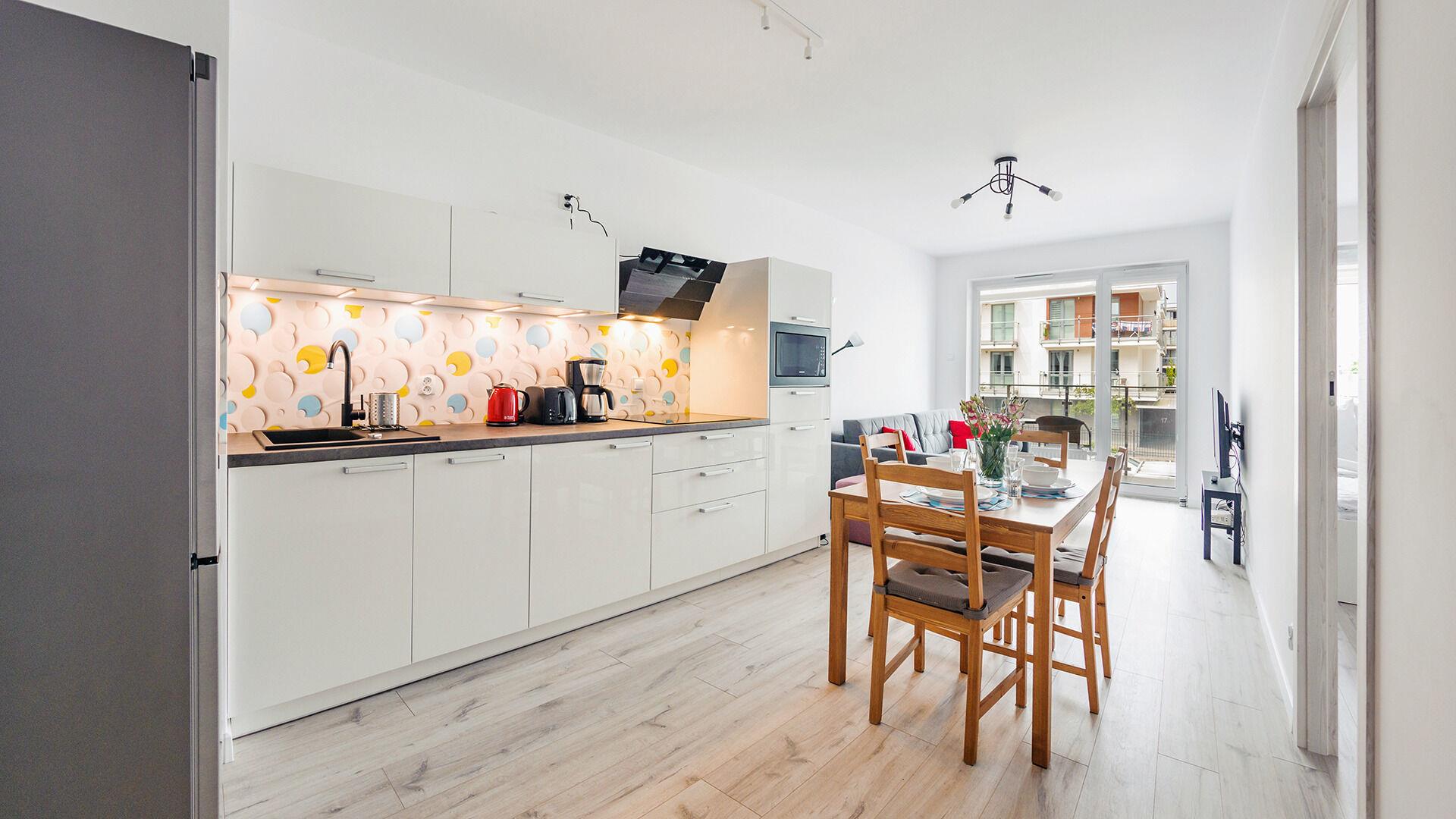 • Haustiere sind in der ausgewählten Wohnung erlaubt. Die Kosten für den Aufenthalt mit einem Haustier betragen 40 PLN pro Tag.