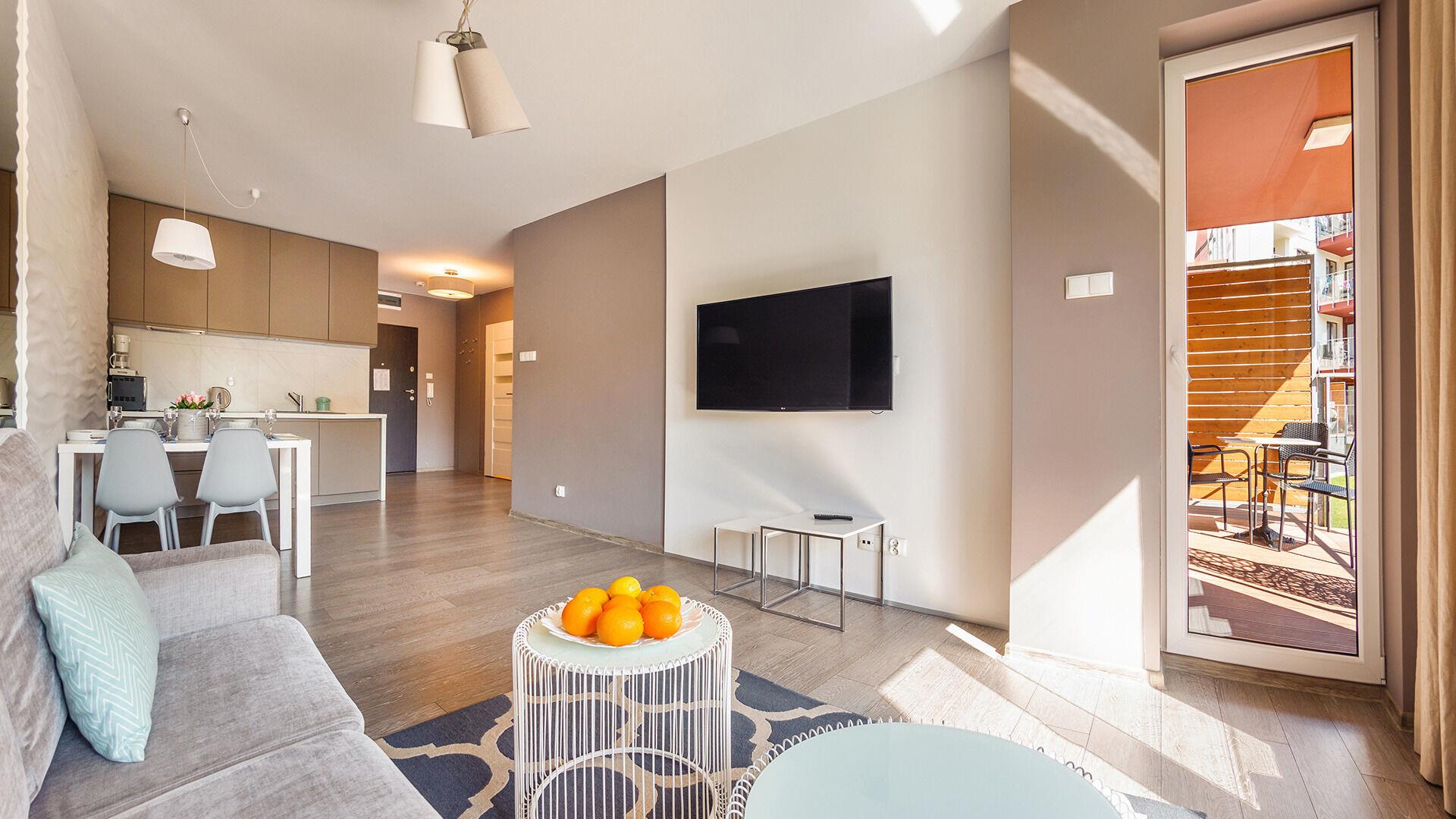• Haustiere sind in der ausgewählten Wohnung erlaubt. Die Kosten für den Aufenthalt mit einem Haustier betragen 40 PLN pro Tag.