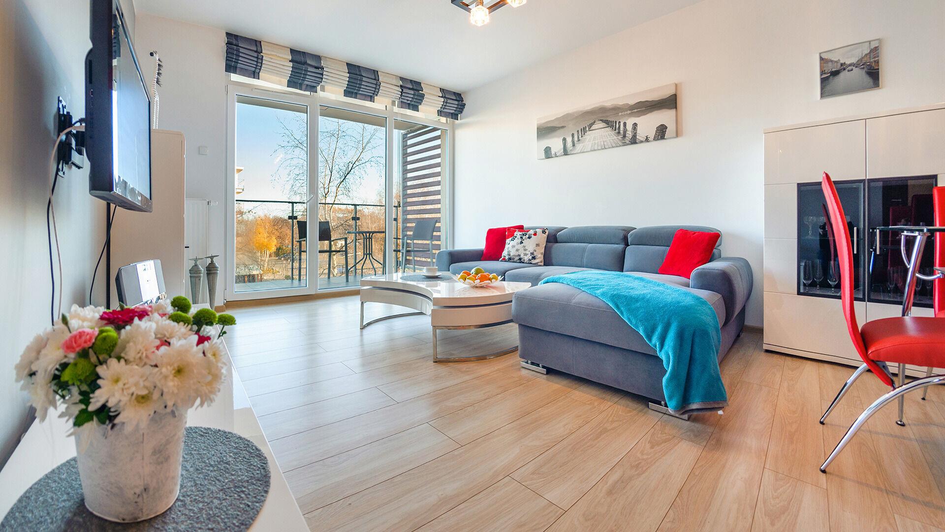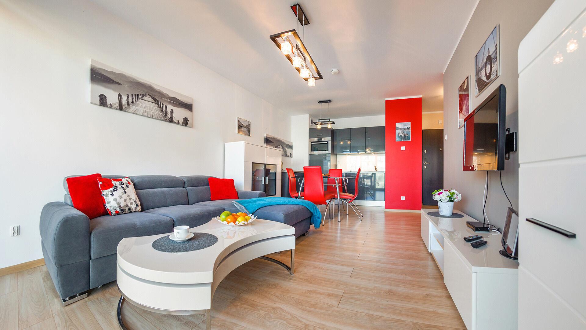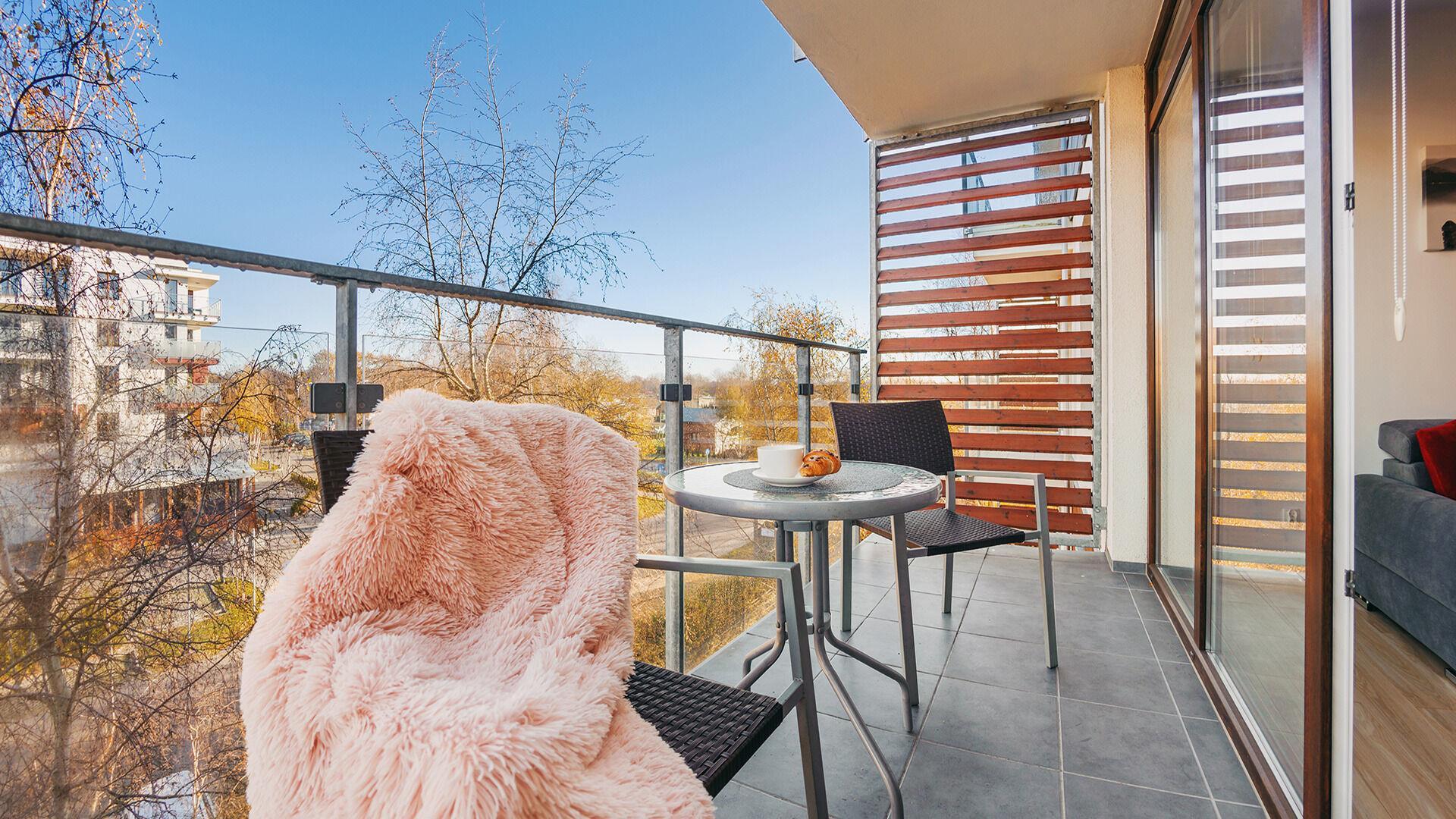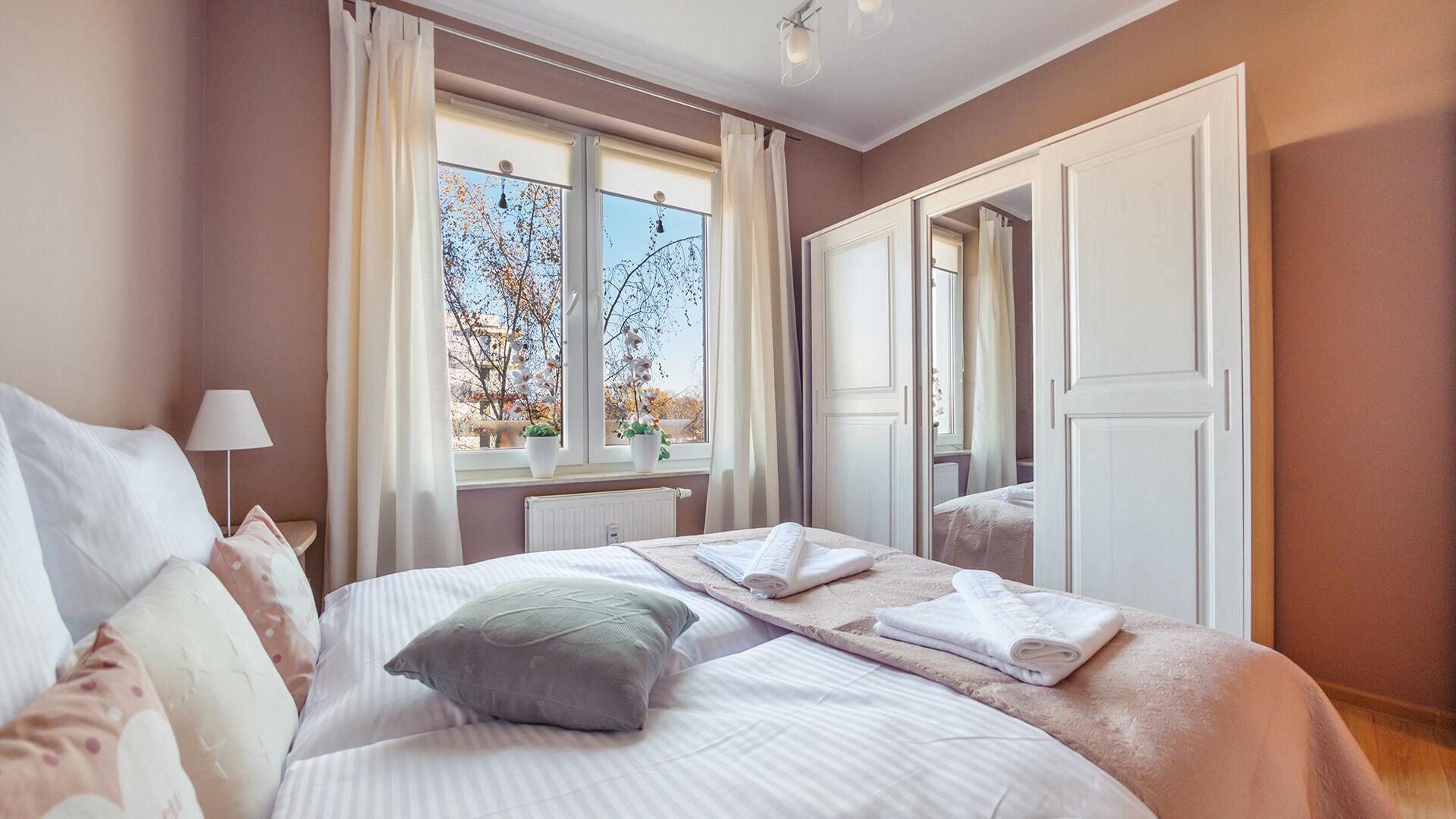 • Haustiere sind in der ausgewählten Wohnung erlaubt. Die Kosten für den Aufenthalt mit einem Haustier betragen 40 PLN pro Tag.