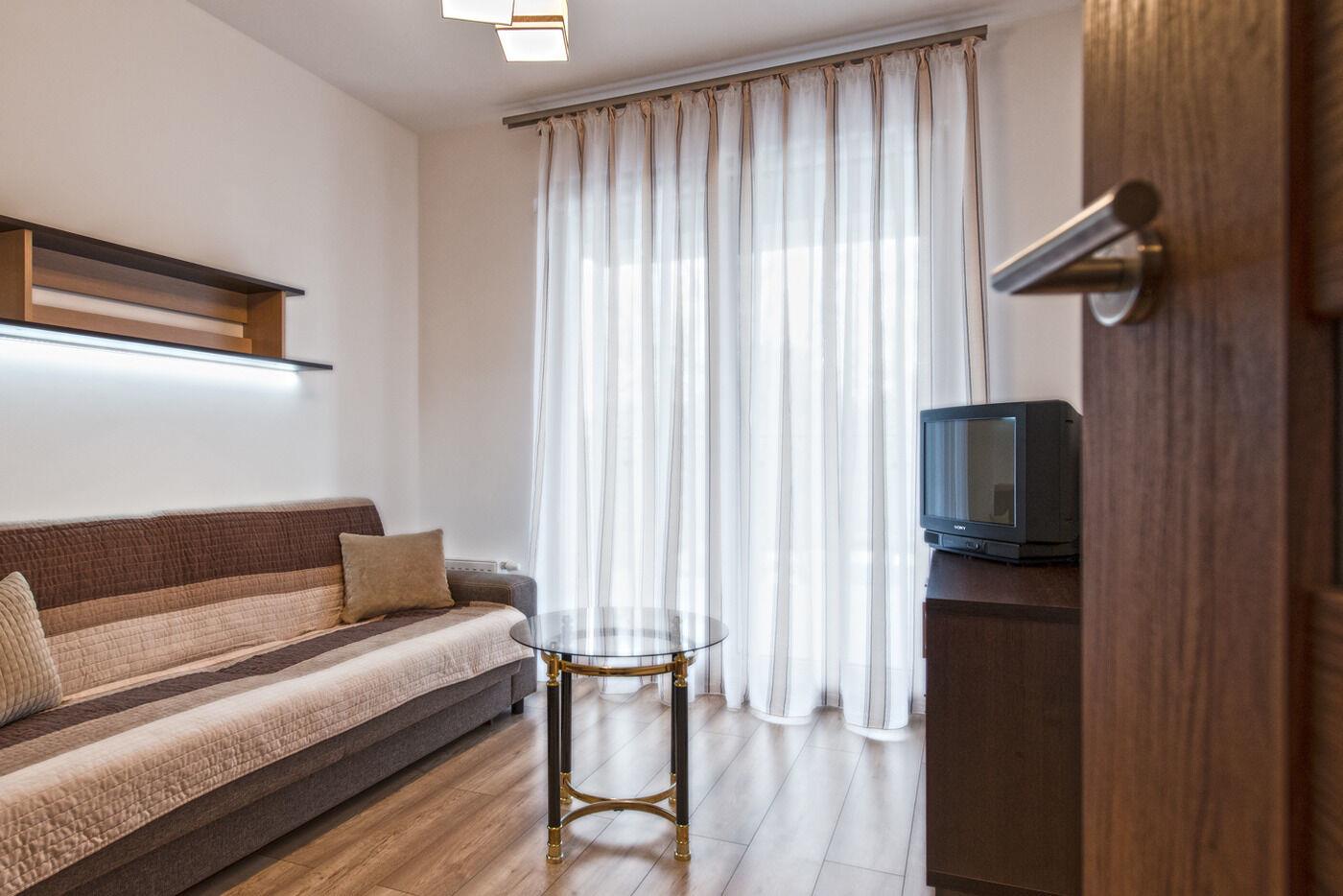 • Haustiere sind in der ausgewählten Wohnung erlaubt. Die Kosten für den Aufenthalt mit einem Haustier betragen 40 PLN pro Tag.