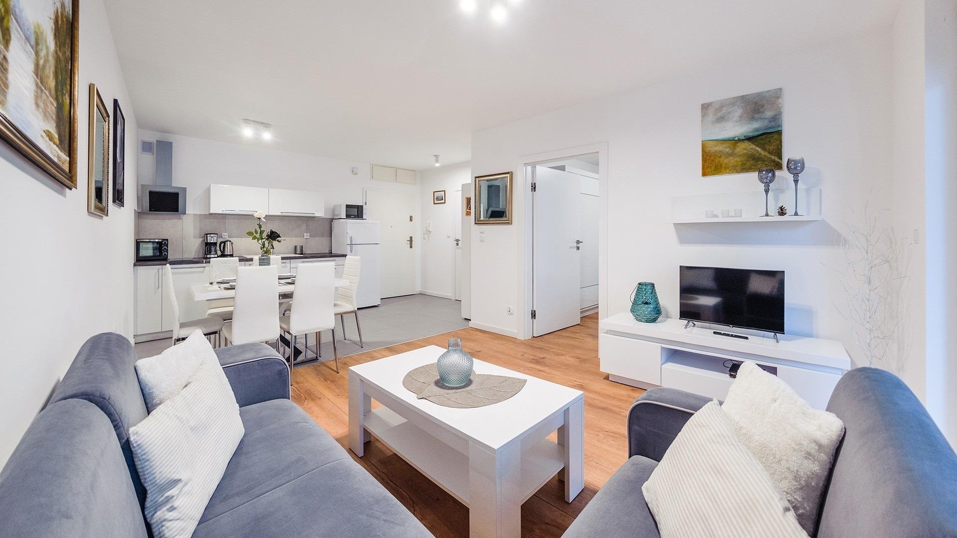 Blizej Morza ist ein großartiger Ort zum Entspannen im zentralen Kurviertel von Kolberg, sowohl für Einzelgäste als auch für Familien mit Kindern. Die neu erbaute Anlage liegt inmitten von Grünflächen, nahe dem Küstenpark, der Strandpromenade, dem Strand und dem Meer und zugleich in greifbarer Nähe zum Stadtzentrum. Das Gebäude ist mit einem Aufzug ausgestattet, mit dem man direkt in die Tiefgarage fahren kann. Vor Ort gibt es ein vollständig ausgestattetes Fitnessstudio, einen Fahrradraum, eine Lobby sowie eine Dachterrasse mit Liegestühlen zum Entspannen. Gegenüber der Wohnanlage befindet sich ein Hotel mit Restaurant und einem Wasser-Thermal-Komplex, der gegen Aufpreis genutzt werden kann. Die Apartments sind mit frischer Bettwäsche und Handtüchern ausgestattet. Gäste erhalten 10 % Rabatt auf Massagen, die direkt zum Apartment oder vor Ort angeboten werden.
