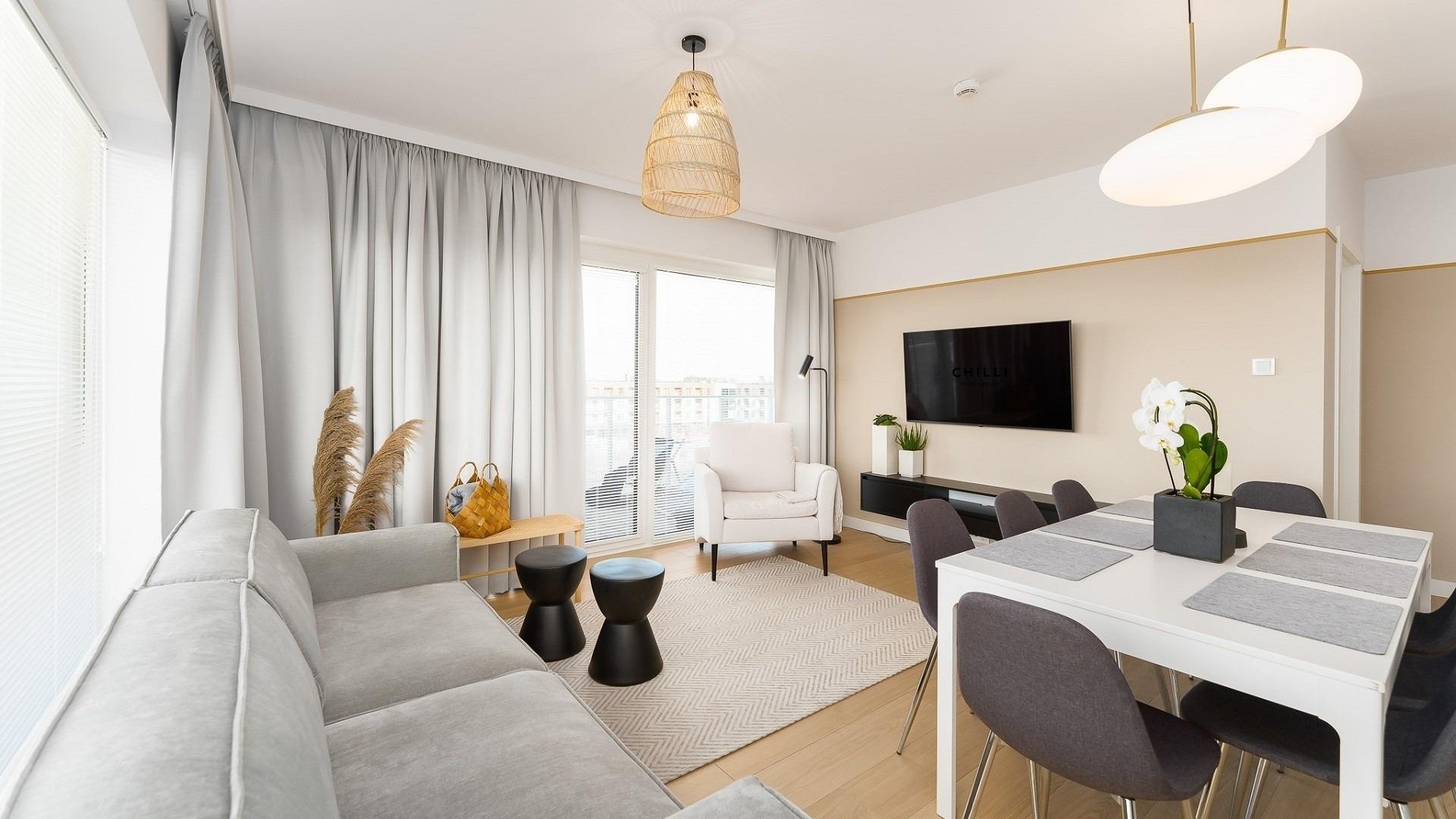 • Haustiere sind in der ausgewählten Wohnung erlaubt. Die Kosten für den Aufenthalt mit einem Haustier betragen 40 PLN pro Tag.