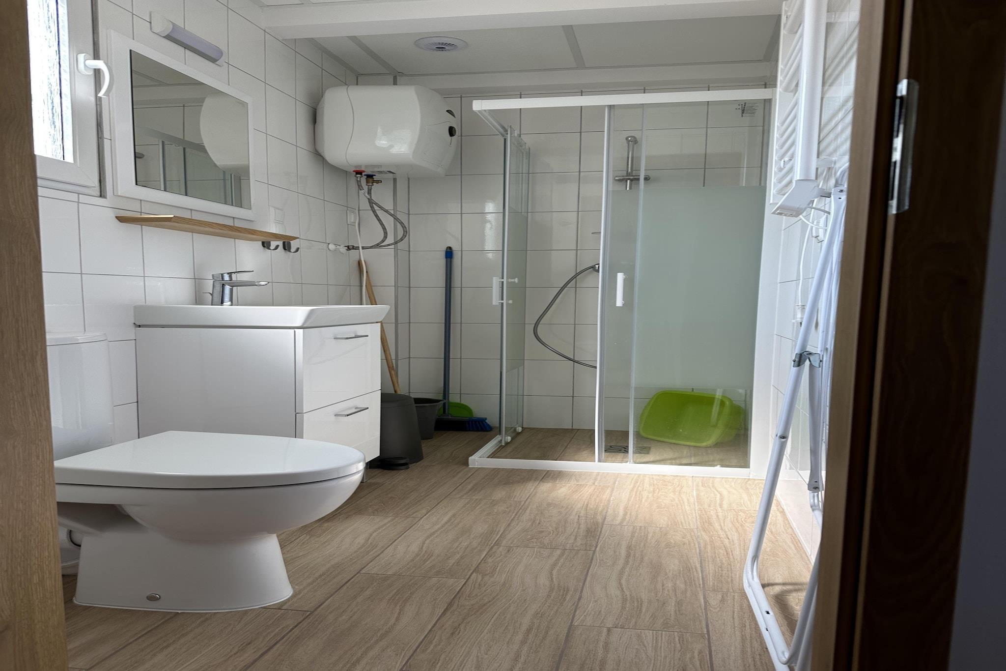 Parterre: (offene Küche(Wasserkocher, Toaster, Kochherd(elektrisch), Mikrowelle, Kühlschrank), Wohn-/Schlafzimmer(Einzelbett(80 x 200 cm), Einzelbett(80 x 200 cm), Doppelschlafcouch(160 x 200 cm), TV(Flatscreen), Esstisch), Badezimmer(Dusche, Waschbecken, Toilette, Heizung(elektrisch), Föhn)) Zentraler Grill, Rezeption, Internet, Parkplatz, Tischtennis, Sportplatz, Fussballfeld, Basketball, Restaurant, Bar, Spielplatz, Waschmaschine(Gemeinschaftliche Nutzung mit anderen Gästen, gegen Gebühr), Terrasse, Garten(Gemeinschaftliche Nutzung mit anderen Gästen, umzäunt), Gartenmöbel, Sandkasten(Gemeinschaftliche Nutzung mit anderen Gästen), Rutsche(Gemeinschaftliche Nutzung mit anderen Gästen), Fahrräder verfügbar(gegen Gebühr), Hochstuhl, Bügelbrett, Bügeleisen, Volleyballfeld, Gartenhaus, Babybett (kostenlos)