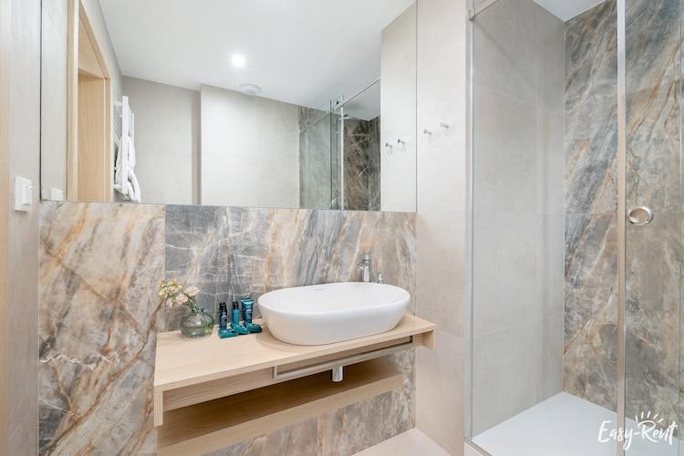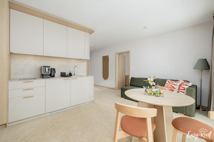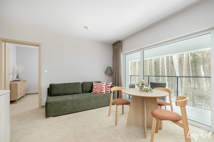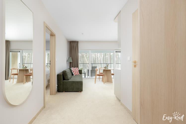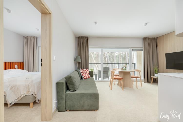 Eine Traumlage, ganz nah am Meer, 300 m zum Strand über einen Weg durch den Wald. Ein modernes Apartmentgebäude auf einem eingezäunten Gelände, mit einem Sommerschwimmbad und einem Spielplatz. Gemütliche, schön eingerichtete Ferienwohnung im 2. Stock (Lift vorhanden). Es gibt ein geräumiges Wohnzimmer mit einem Doppelschlafsofa, einem Fernseher und einem Tisch. Das Wohnzimmer ist mit der Küche verbunden. Es gibt ein Schlafzimmer mit einem bequemen Doppelbett und ein Badezimmer mit Dusche. Zur Wohnung gehört ein großer Balkon mit Gartenmöbeln. Es gibt eine Klimaanlage mit Kühl- und Heizfunktion. WLAN ist verfügbar. Sicheres Parken vor Ort. Das gemütliche Resort verfügt über einen Sommerpool mit Hydromassage (geöffnet im Juli und August). Der Pool ist von Liegestühlen umgeben. Außerdem gibt es einen attraktiven Spielplatz. Im Preis Ihres Aufenthalts sind enthalten: Strom- und Wasserverbrauch, Klimaanlage, Parkplatz, Internet, Nutzung des Sommerschwimmbads (Juli - August), Hochstuhl (nach vorheriger Anmeldung). Lukecin ist eine kleine, charmante Küstenstadt zwischen Pobierowo und Dziwnów, gelegen inmitten eines Nadelwaldes, der das Meer von der Stadt trennt. Wenn Sie bei der Wahl Ihrer Unterkunft am Meer einen ruhigen Ort zur aktiven Erholung suchen, ist Lukecin eine gute Wahl, Sie werden die hier herrschende Ruhe und Stille sicherlich zu schätzen wissen. Selbst in der Ferienzeit herrscht hier kein Gedränge. Am Strand gibt es eine kleine Aussichtsplattform. Kinder werden von einem Besuch des Walparks im nahegelegenen Rewal (ca. 10 km) mit echten Meeresriesen begeistert sein. Der Stolz der Stadt und der gesamten Region ist die renovierte Schmalspurbahn, die für einen reizvollen Ausflug in die benachbarten Ferienorte genutzt werden kann (nächster Bahnhof: Trzesacz – 8,5 km).