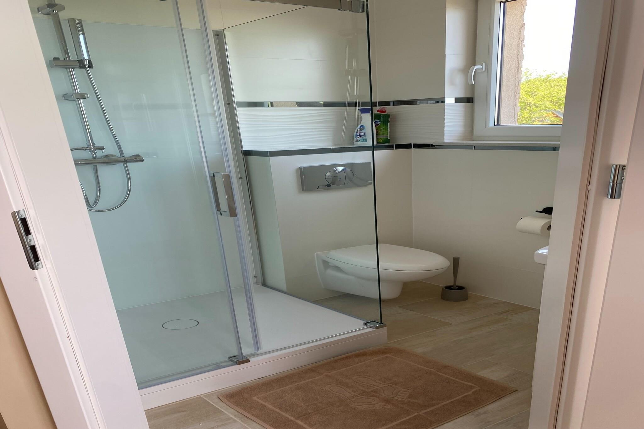 In der 1. Etage: (Küche(Gemeinschaftliche Nutzung mit anderen Gästen)(Wasserkocher, Kochendwasserhahn, Toaster, Kochherd(2 Kochplatten, Induktion), Espressomaschine, Mikrowelle, Kühl-/Gefrierkombination), Wohn-/Schlafzimmer(Einzelbett, Einzelbett, Doppelbett oder 2 Einzelbetten, TV(Satellit, Deutsch Fernsehsender), Esstisch), Badezimmer(Dusche, Waschbecken, Toilette)) Internet, Whirlpool, streamingservice, Reisebett , Klimaanlage, Parkplatz, Pool(Gemeinschaftliche Nutzung mit anderen Gästen, im Garten, 8 x 4 m., geöffnet von Mai bis einschließlich 1/2 Sep), Fahrräder verfügbar, Hochstuhl