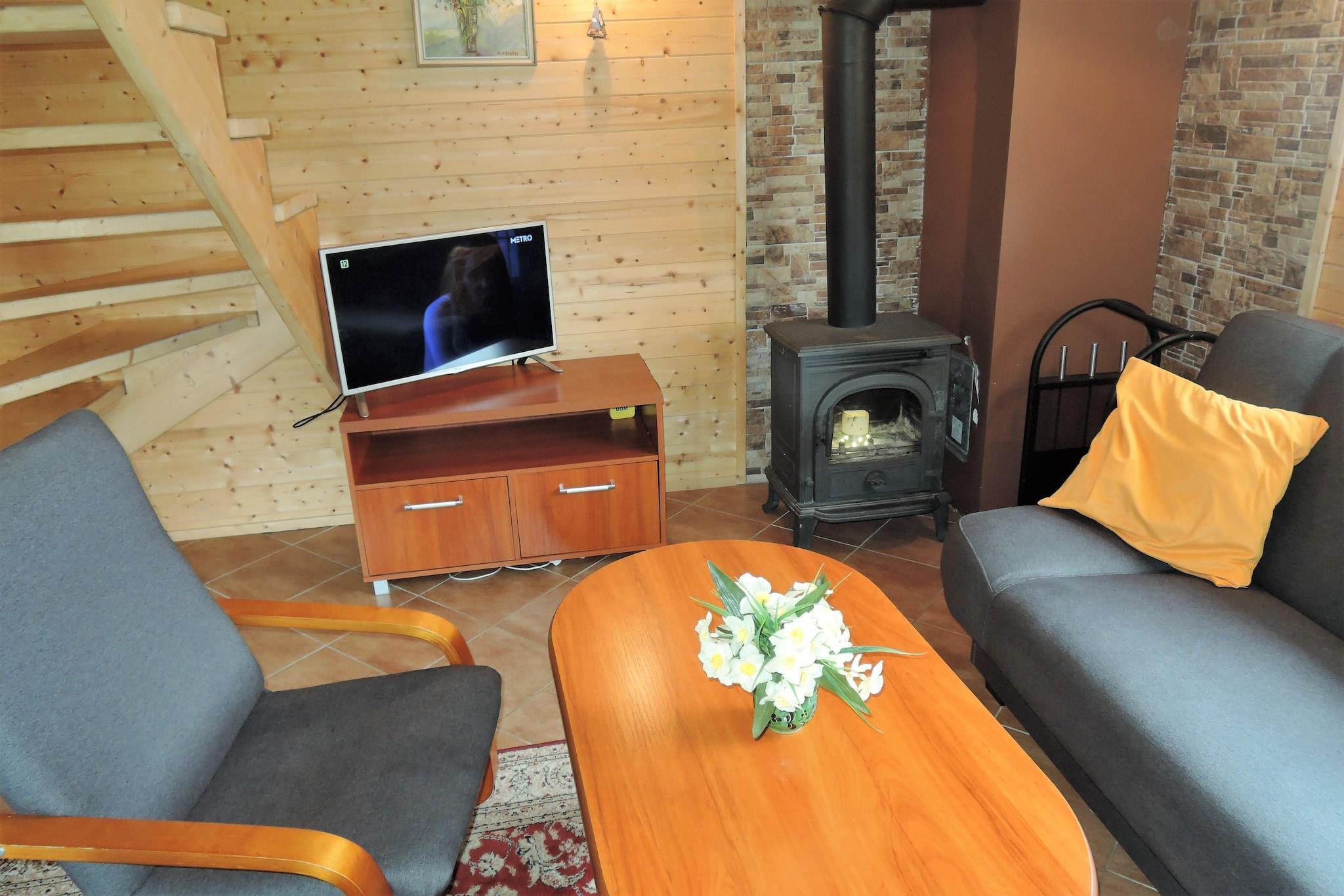 Parterre: (offene Küche(Esstisch, Wasserkocher, Kochendwasserhahn, Kochherd(4 Kochplatten, Gas), Espressomaschine, Backofen, Kühl-/Gefrierkombination), Wohn-/Schlafzimmer(Doppelschlafcouch, TV, Sitzecke), Badezimmer(Dusche, Waschbecken, Toilette)) In der 1. Etage: (Schlafzimmer(Doppelbett oder 2 Einzelbetten), Schlafzimmer(Einzelbett, Einzelbett), Toilette(Waschbecken, Toilette)) Terrasse, Garten(alleinige Nutzung, umzäunt, 540 m2), Gartenmöbel, Grill