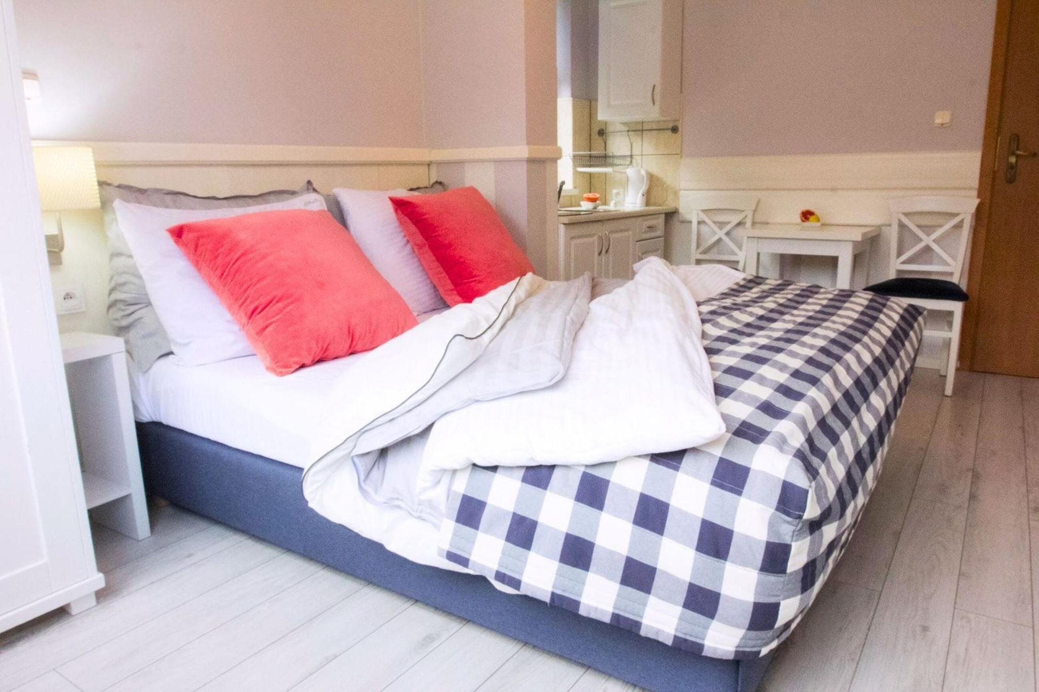 Das Doppelapartment befindet sich in einer komfortablen Villa in der Nähe des Nationalparks Wolin, 10 Minuten vom Strand und 250 m vom Stadtzentrum entfernt. Die Wohnung befindet sich im Erdgeschoss. Es verfügt über einen separaten Eingang von außen. Miedzyzdroje ist ein Ferienort mit einzigartiger Atmosphäre, der bei Touristen, die ihren Urlaub am Meer verbringen, sehr beliebt ist und oft sogar als Sommerhauptstadt Westpommerns bezeichnet wird. Die Stadt liegt zwischen der Klippenküste und dem Wolin-Nationalpark. Von hier aus können Besucher die wunderschöne Landschaft und wilde Vegetation bewundern, den Türkissee, das Bisonreservat und das Naturmuseum besuchen. Der Ruhm von Miedzyzdroje wird durch die häufigen Besuche der größten Stars des polnischen Kinos noch verstärkt. Jedes Jahr finden hier Chor- und Filmfestivals statt.