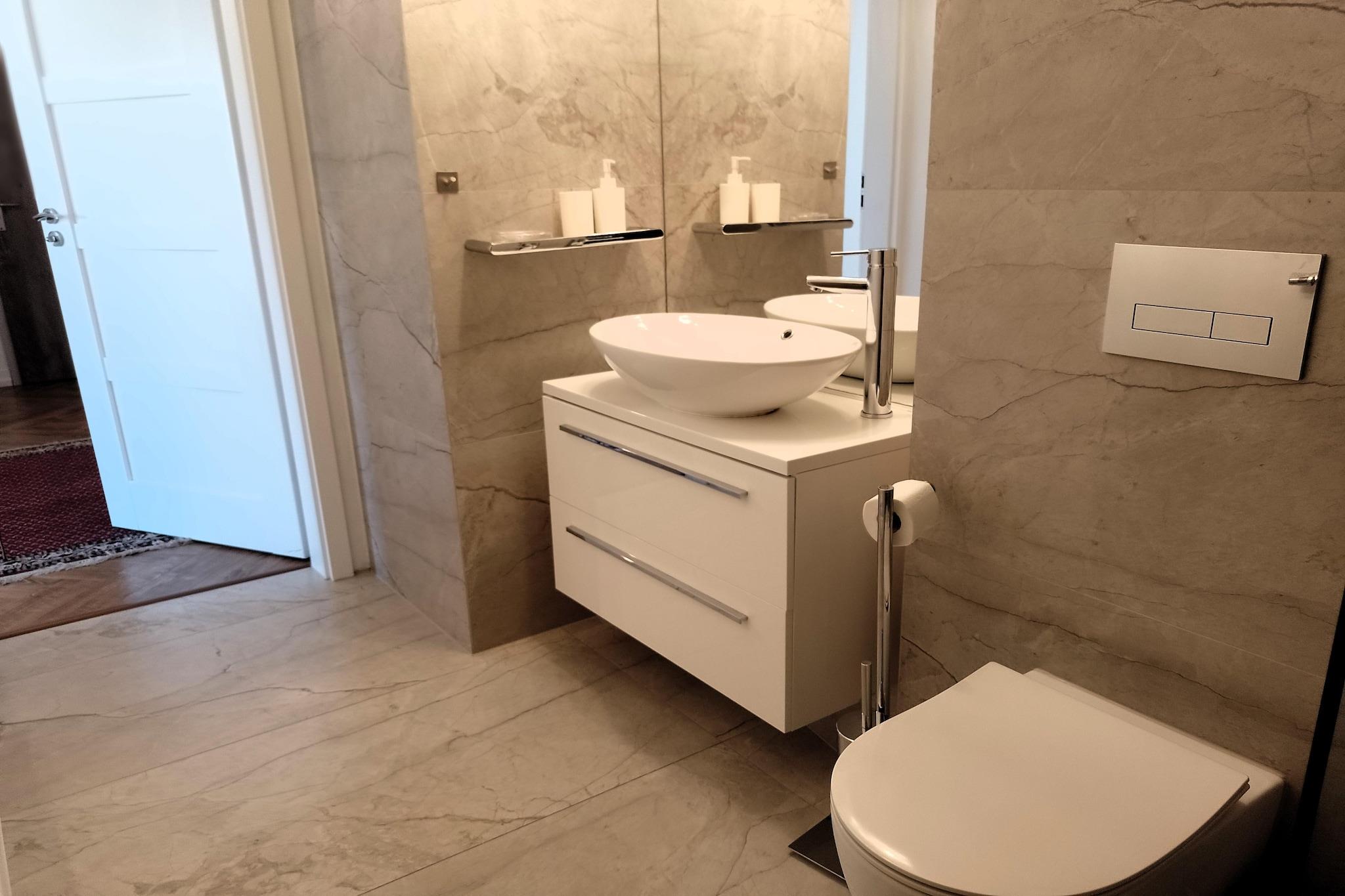 In der 2. Etage: (offene Küche(Wasserkocher, Kochendwasserhahn, Toaster, Kochherd(4 Kochplatten, Induktion), Dunstabzugshaube, Espressomaschine, Spülmaschine, Kühl-/Gefrierkombination), Wohn-/Schlafzimmer(Doppelschlafcouch, TV(Satellit, Deutsch Fernsehsender), Esstisch, Sitzecke), Schlafzimmer(Doppelbett king size, TV(Satellit, Deutsch Fernsehsender)), Badezimmer(Dusche, Waschbecken, Toilette, Waschmaschine)) Garage, Internet, Aufzug