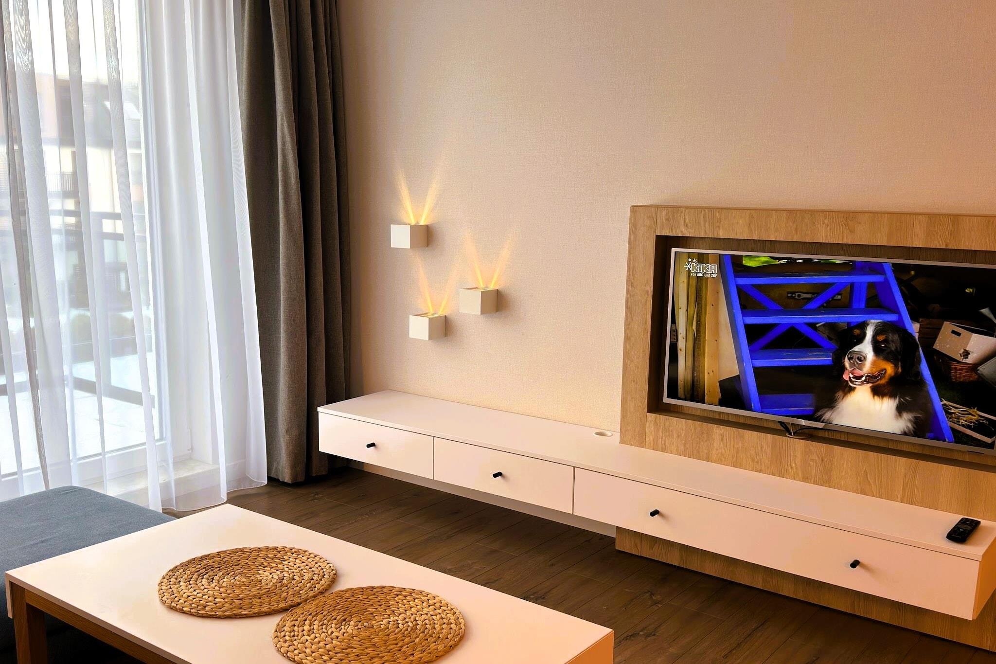 Dieses neue, komfortable Apartment im Zentrum von Miedzyzdroje bietet Platz für vier Personen. Das geschmackvoll eingerichtete Apartment verfügt über ein helles Wohnzimmer mit Schlafcouch, eine gut ausgestattete Küchenzeile, ein Schlafzimmer mit einem komfortablen Doppelbett und ein Badezimmer mit Dusche. Sowohl der Wohnbereich als auch das Schlafzimmer haben Zugang zu einem möblierten Balkon mit Blick auf den Wasserpark. Die gut ausgestattete Küchenzeile ermöglicht es den Gästen, sich ihre Mahlzeiten ganz nach Belieben zuzubereiten. Zur Ausstattung gehören ein Flachbildfernseher und kostenfreies WLAN. Ein Stellplatz in der Tiefgarage ist im Buchungspreis inbegriffen. Gegen eine zusätzliche Gebühr können die Gäste außerdem den Wasserpark, das Fitnessstudio, den Wellnessbereich und den Kinderspielplatz nutzen. Das Apartment befindet sich in Miedzyzdroje, im neuesten Komplex „Bel Mare“. Die Lage garantiert einen ruhigen Aufenthalt im Stadtzentrum und in Strandnähe – eine fantastische Wahl für Ihren Aufenthalt in Miedzyzdroje! Die Unterkunft bietet zahlreiche Annehmlichkeiten wie einen Supermarkt, ein Restaurant, einen Geldautomaten und einen Schönheitssalon. Die Unterkunft liegt nur 450 Meter vom Zugang zu einem wunderschönen Strand entfernt. Die Hauptattraktionen von Miedzyzdroje – die Promenade und die Seebrücke – sind nur wenige Minuten von der Wohnung entfernt.