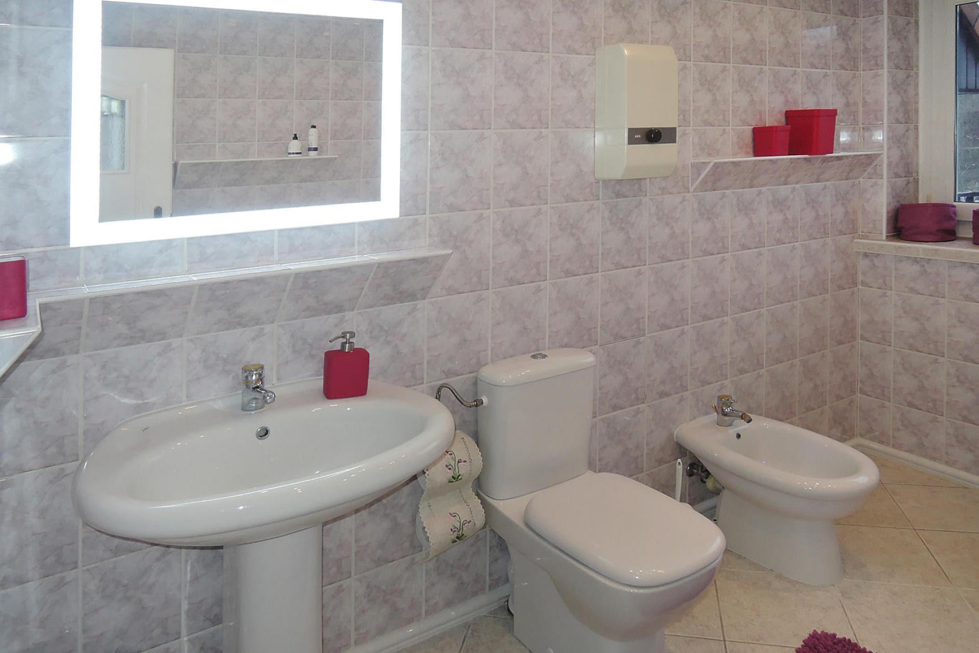 Parterre: (Wohnzimmer(TV(Satellit, Deutsch Fernsehsender), Sitzecke, Radio), offene Küche(Esstisch, Wasserkocher, Kochendwasserhahn, Toaster, Kochherd, Dunstabzugshaube, Kaffeemaschine, Espressomaschine, Mikrowelle, Spülmaschine, Kühl-/Gefrierkombination), Toilette(Waschbecken, Toilette), guest toilet) In der 1. Etage: (Schlafzimmer(Doppelbett, TV(Satellit, Deutsch Fernsehsender)), Schlafzimmer(Doppelbett, TV(Satellit, Deutsch Fernsehsender)), Badezimmer(Badewanne, Waschbecken, Toilette, Bidet)) In der 2. Etage: (Schlafzimmer(Doppelbett, TV(Satellit, Deutsch Fernsehsender)), Schlafzimmer(Doppelbett, TV(Satellit, Deutsch Fernsehsender)), Badezimmer(Dusche, Waschbecken, Toilette)) Garage, Balkon, Balkon, Heizung(Gas), Terrasse, Gartenmöbel, Parkplatz, Babybett (kostenlos)
