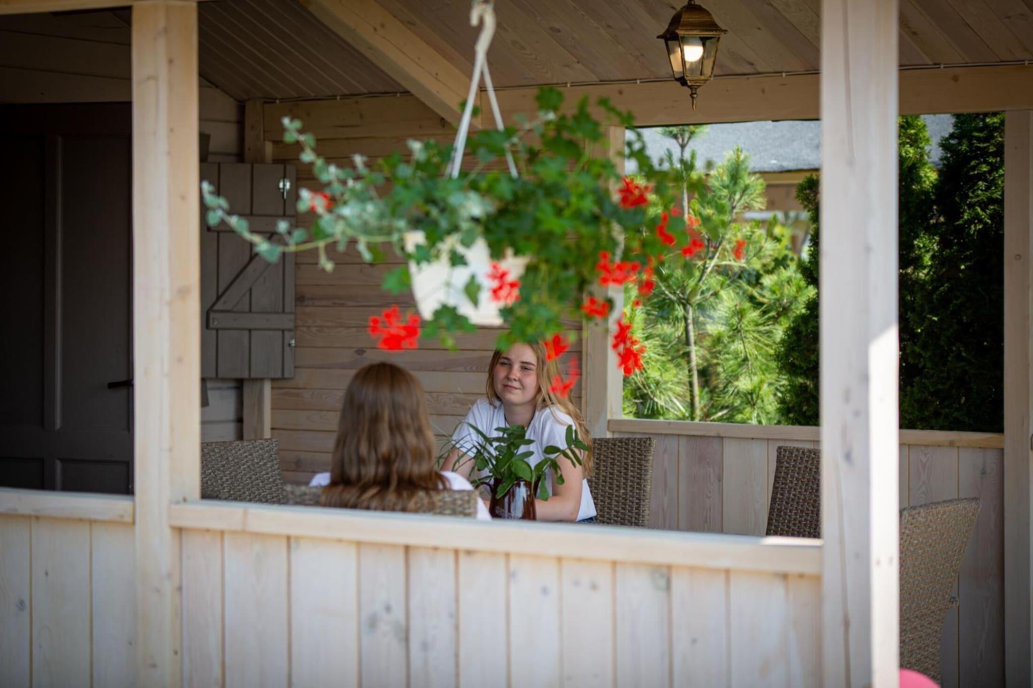 Parterre: (Kochnische(Esstisch, Wasserkocher, Kochendwasserhahn, Toaster, Kochherd(2 Kochplatten, elektrisch), Espressomaschine, Mikrowelle, Kühl-/Gefrierkombination), Wohn-/Schlafzimmer(Etagenbett, Doppelbett king size, TV(Deutsch Fernsehsender)), Badezimmer(Dusche, Waschbecken, Toilette)) Grill, Sauna (kostenpflichtig), Garten, Gartenmöbel, Grill, Trampolin, Sonnenschirm, Rutsche, Schaukel, Babybett (kostenlos)