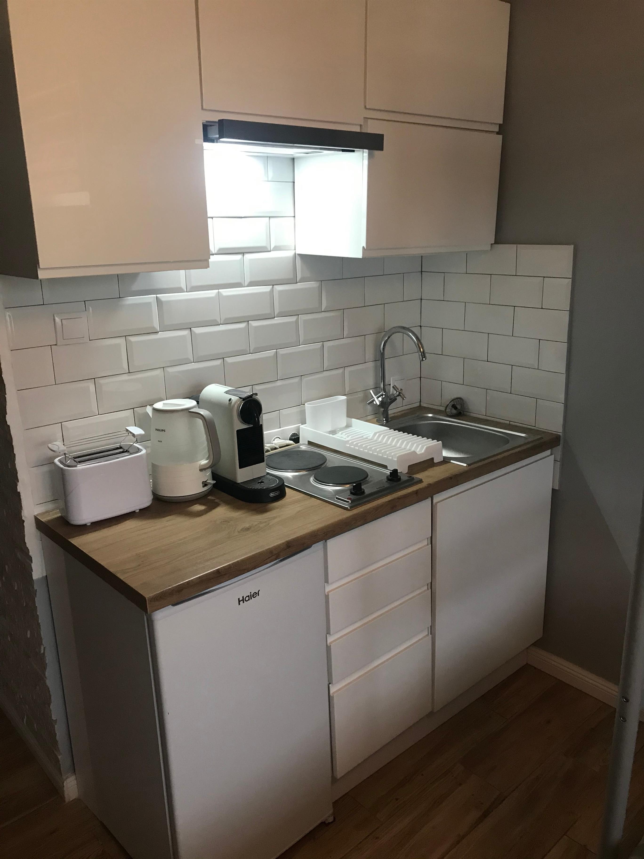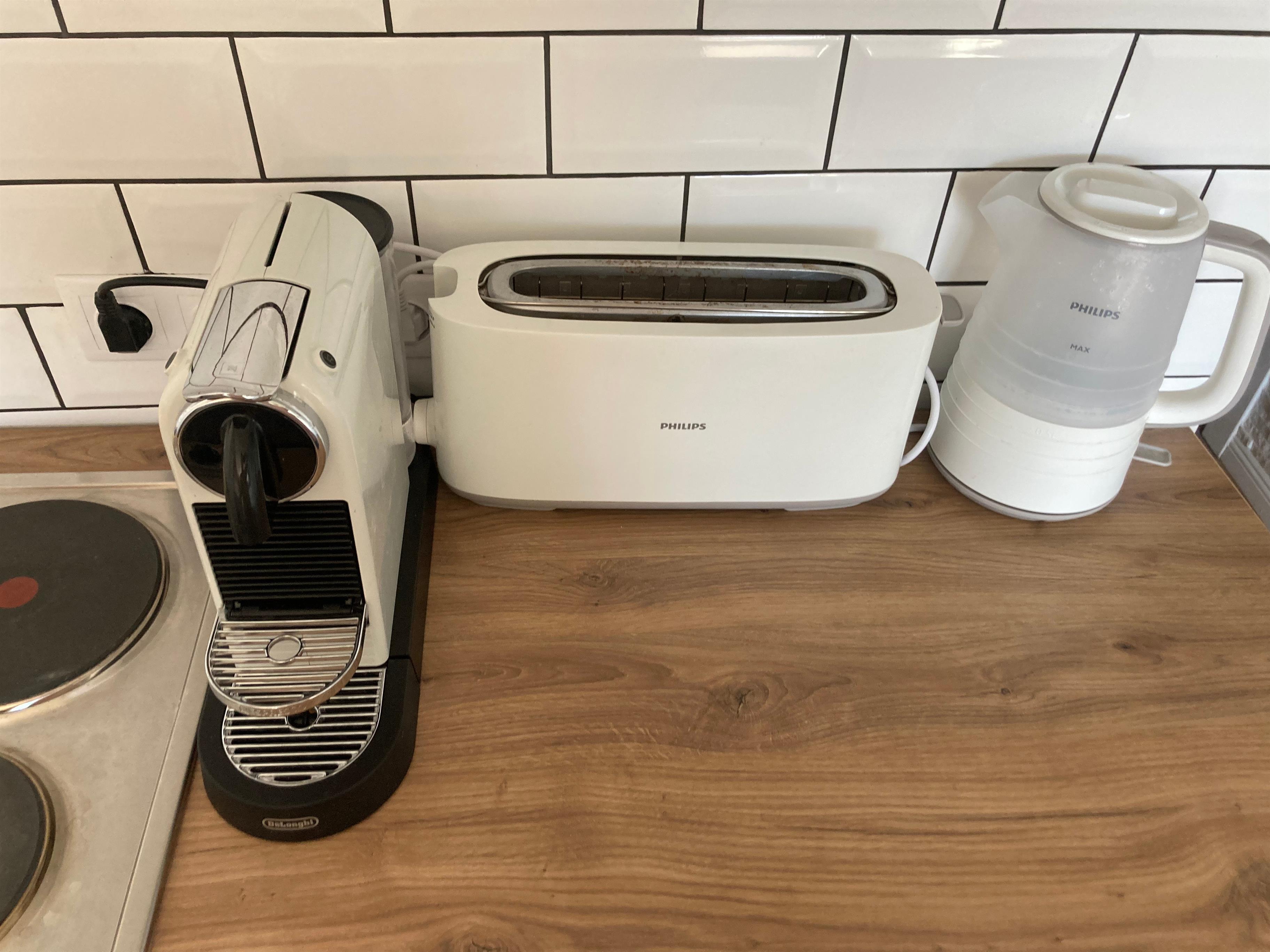- Kleine Küche mit 2 Herdplatten, Wasserkocher, Tee, Nespresso Maschine, Kaffee zum Selbermachen inklusive. Mikrowelle und Toaster vorhanden.
