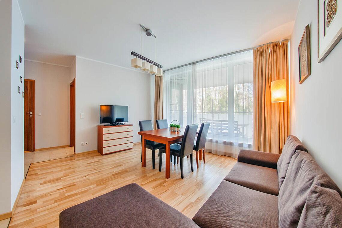 Aquamarina ist ein modernes Apartmentkomplex. Es befindet sich direkt am Wald, was die Nähe zur Natur fördert. Um den Strand zu erreichen, muss man nur eine Düne überqueren. Die Lage ist ideal für Menschen, die Ruhe und Entspannung schätzen. Die Apartments sind komfortabel eingerichtet und ausgestattet, die Fenster der meisten von ihnen sind zum Wald hin ausgerichtet.