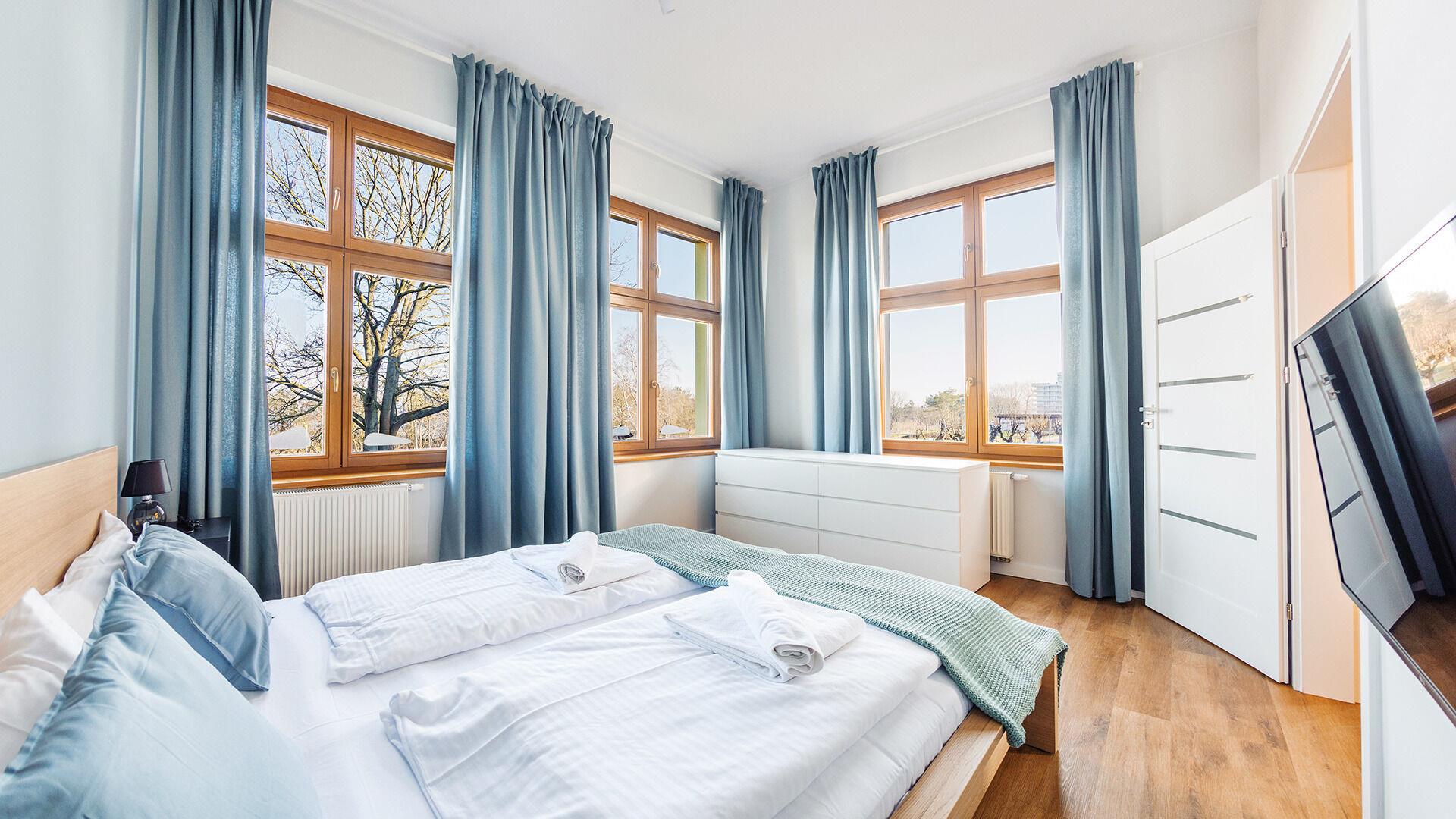 • Haustiere sind in der ausgewählten Wohnung erlaubt. Die Kosten für den Aufenthalt mit einem Haustier betragen 40 PLN pro Tag.