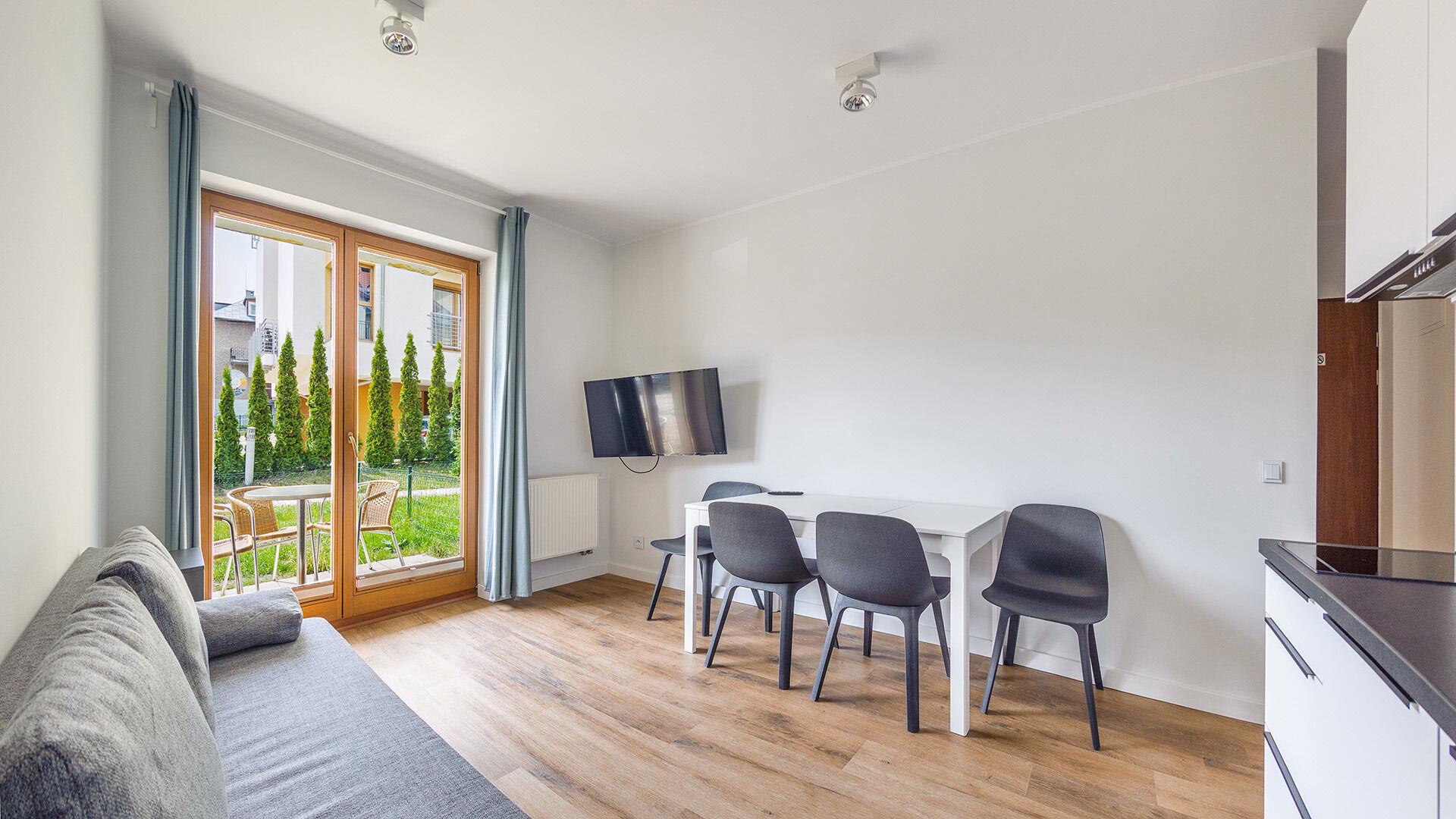 • Haustiere sind in der ausgewählten Wohnung erlaubt. Die Kosten für den Aufenthalt mit einem Haustier betragen 40 PLN pro Tag.