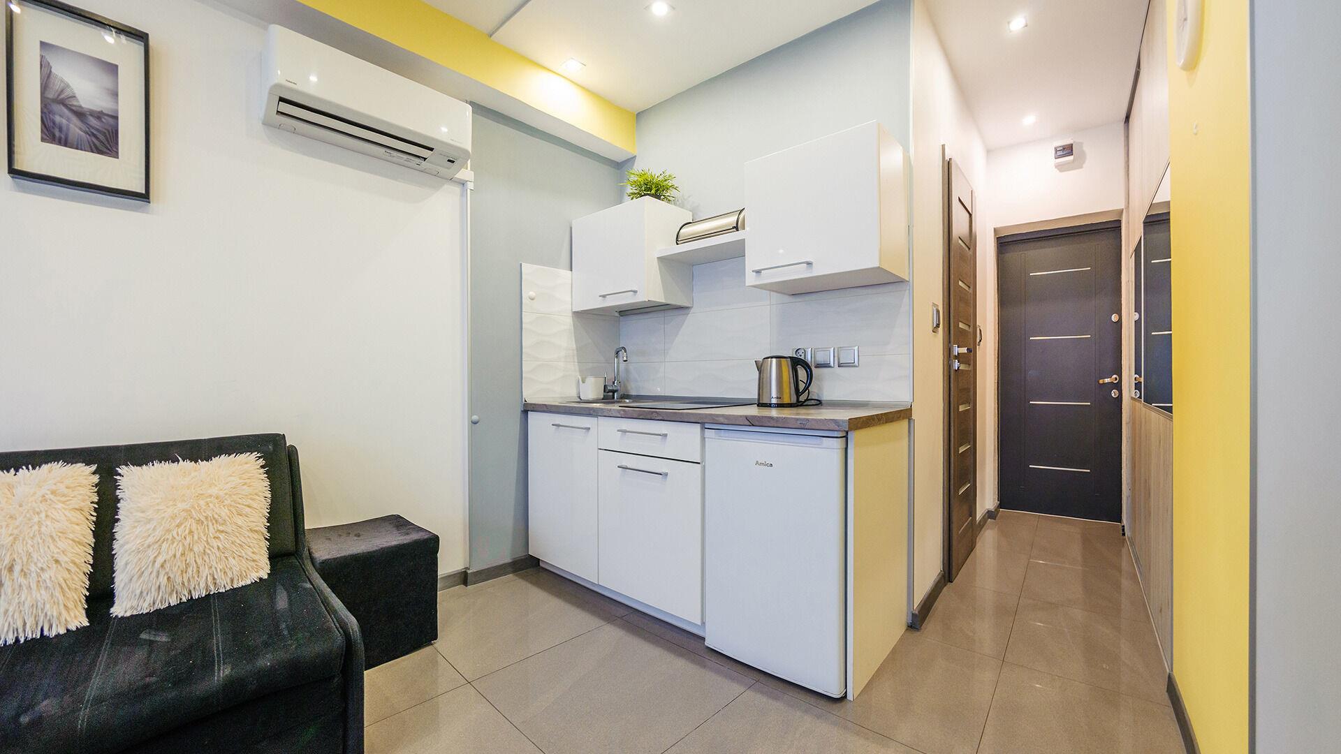• Haustiere sind in der ausgewählten Wohnung erlaubt. Die Kosten für den Aufenthalt mit einem Haustier betragen 40 PLN pro Tag.