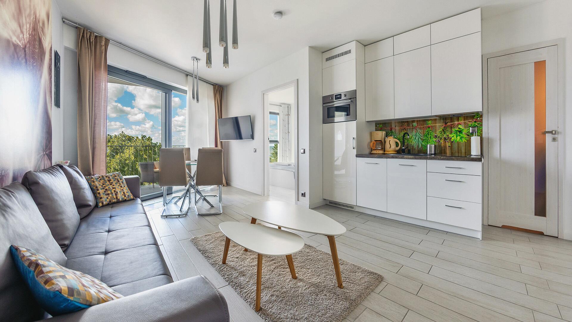 Horyzont ist eine moderne und komfortable Anlage, gelegen in der ul. 1000-lecia Panstwa Polskiego 8 in Miedzyzdroje. Die Apartments befinden sich in einer ruhigen, grünen Umgebung, was sie zu einem idealen Ort für Erholung fernab vom städtischen Trubel macht. In der Nähe liegt ein wunderschöner Park, und die kurze Entfernung zum Strand ist ein weiterer Vorteil dieser Lage.