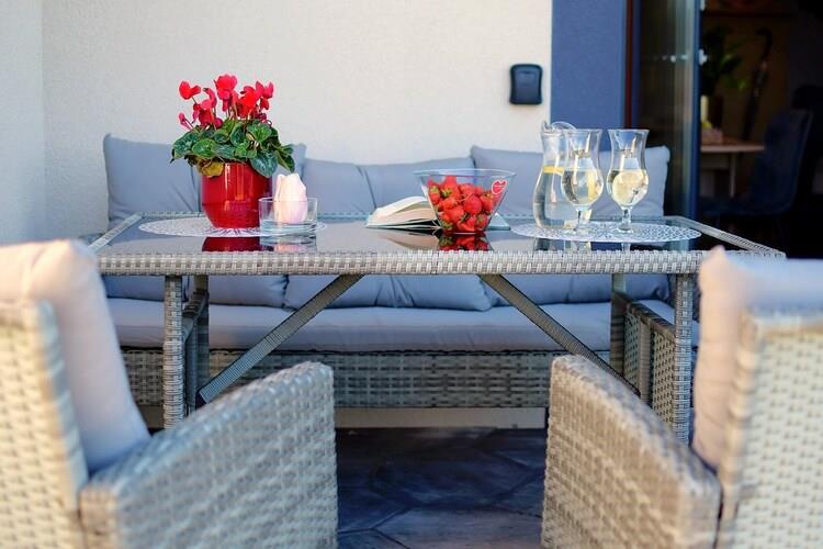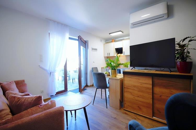 Parterre: (offene Küche(Kochplatte(Induktion), Wasserkocher, Dunstabzugshaube, Kaffeemaschine, Mikrowelle, Kühl-/Gefrierkombination), Wohn/Esszimmer(Doppelschlafcouch(160 x 200 cm), TV(Flatscreen), Esstisch), Badezimmer(Dusche, Waschbecken, Toilette)) In der 1. Etage: (Schlafzimmer(Doppelbett), Schlafzimmer(Doppelschlafcouch(140 x 190 cm))) Internet, Parkplatz, Spielplatz, Liegewiese, Klimaanlage, Terrasse, Garten(Gemeinschaftliche Nutzung mit anderen Gästen, umzäunt), Gartenmöbel, Liegen, Grill(Holzkohle), Trampolin, Rutsche(Gemeinschaftliche Nutzung mit anderen Gästen), Sonnenschirm, Schaukel