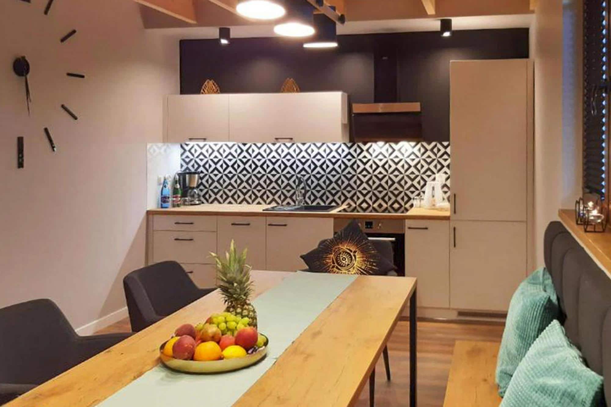 Ein Familienferienort am Stadtrand von Mielno – eine ruhige Küstensiedlung, die ein ruhiger Vorort des viel lebhafteren Ferienortes Mielno ist. Der Strand ist 850 m entfernt. Das ruhige Zentrum von Mielenko ist nur wenige Schritte entfernt. Im 3 km entfernten Mielno gibt es viele Restaurants, Cafés und Geschäfte. Ein sehr komfortables Reihenhaus auf einem gepflegten, eingezäunten Grundstück, das zu einer gemütlichen Ferienanlage gehört. Das zweistöckige Haus verfügt über eine überdachte Terrasse mit bequemen Loungemöbeln. Im Erdgeschoss befindet sich ein geräumiges Wohnzimmer mit Tisch und Fernseher. Das Wohnzimmer ist mit einer gut ausgestatteten Küche verbunden. Im Erdgeschoss gibt es außerdem ein Schlafzimmer und ein Badezimmer mit Dusche (es gibt auch eine Waschmaschine). Im ersten Stock befinden sich 3 Schlafzimmer (davon 1 mit Balkon) und ein zweites Badezimmer mit Dusche. Das Haus ist mit einer effizienten Heizung ausgestattet, die Ihren Aufenthalt zu jeder Jahreszeit und bei jedem Wetter angenehm macht. WLAN ist verfügbar. Das Resort verfügt über eine ganzjährig geöffnete Sauna und einen Whirlpool im Freien (im Preis des Aufenthalts inbegriffen und steht allen Gästen des Resorts zur Verfügung). Außerdem gibt es einen Fahrradverleih (auch elektrisch) und einen Grillpavillon. Ein attraktiver Spielplatz für die Kleinsten. Es besteht auch die Möglichkeit, Frühstück und Mittagessen vor Ort zu bestellen. Im Preis des Aufenthalts sind enthalten: Bettwäsche, Handtücher, Strom- und Wasserverbrauch, Sauna, Whirlpool, Endreinigung, Internet, Parkplatz, Kurtaxe. Auf Anfrage und nach vorheriger Absprache besteht die Möglichkeit, ein Kinderbett für ein Kleinkind und einen Hochstuhl (kostenlos) zu mieten. Der schöne Meeresstrand ist zu Fuß oder mit dem Fahrrad schnell zu erreichen. 3 km vom Zentrum entfernt befindet sich der Jamno-See mit einem Yachthafen und einem Verleih von Wasserausrüstung (Tretboote, Kajaks, Ruderboote). Hier gibt es auch Angelplätze.