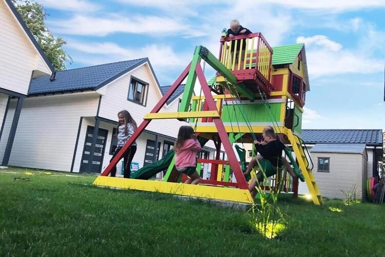 Parterre: (offene Küche(Kochplatte(2 Kochplatten, Induktion), Wasserkocher, Kühl-/Gefrierkombination), Wohn/Esszimmer(Doppelschlafcouch, TV(Flatscreen), Esstisch), Badezimmer(Dusche, Waschbecken, Toilette, Föhn)) In der 1. Etage: (Schlafzimmer(Einzelbett, Doppelbett), Schlafzimmer(Einzelbett, Doppelbett)) Internet, Parkplatz, Spielplatz, Liegewiese, Heizung(elektrisch), Garten(Gemeinschaftliche Nutzung mit anderen Gästen, umzäunt), Gartenmöbel, Grill(Gemeinschaftliche Nutzung mit anderen Gästen, Holzkohle), Sandkasten(Gemeinschaftliche Nutzung mit anderen Gästen), Rutsche(Gemeinschaftliche Nutzung mit anderen Gästen), Hochstuhl, Gartenhaus, Schaukel, Babybett (kostenlos)