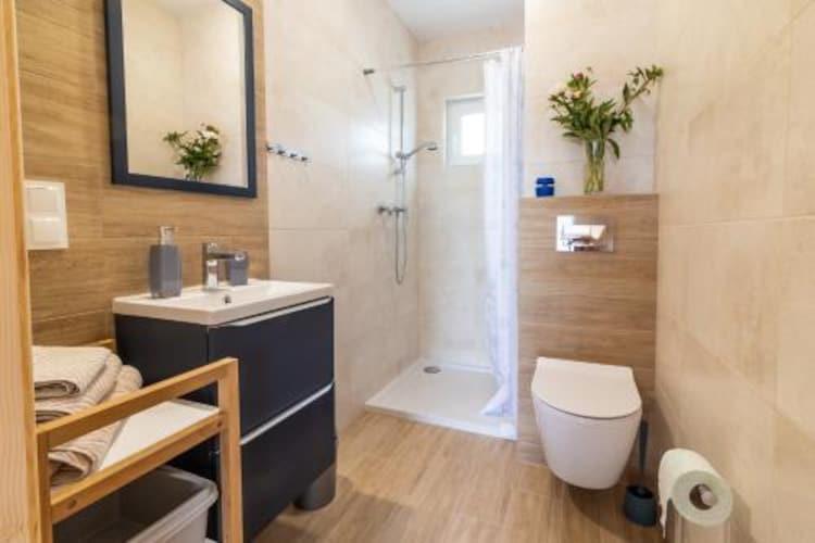 Parterre: (offene Küche(Kochplatte(2 Kochplatten, Induktion), Wasserkocher, Dunstabzugshaube, Mikrowelle, Kühl-/Gefrierkombination), Wohn/Esszimmer(Doppelschlafcouch, TV(Flatscreen), Esstisch), Schlafzimmer(Doppelbett), Badezimmer(Dusche, Waschbecken, Toilette, Föhn)) Rezeption, Parkplatz, Liegewiese, Waschmaschine(Gemeinschaftliche Nutzung mit anderen Gästen, gegen Gebühr), Heizung(Fußbodenheizung, durch Klimaanlagen), Terrasse(Gemeinschaftliche Nutzung mit anderen Gästen), Garten(Gemeinschaftliche Nutzung mit anderen Gästen, umzäunt), Gartenmöbel, Liegen, Grill(Gemeinschaftliche Nutzung mit anderen Gästen, Gas), Sonnenschirm