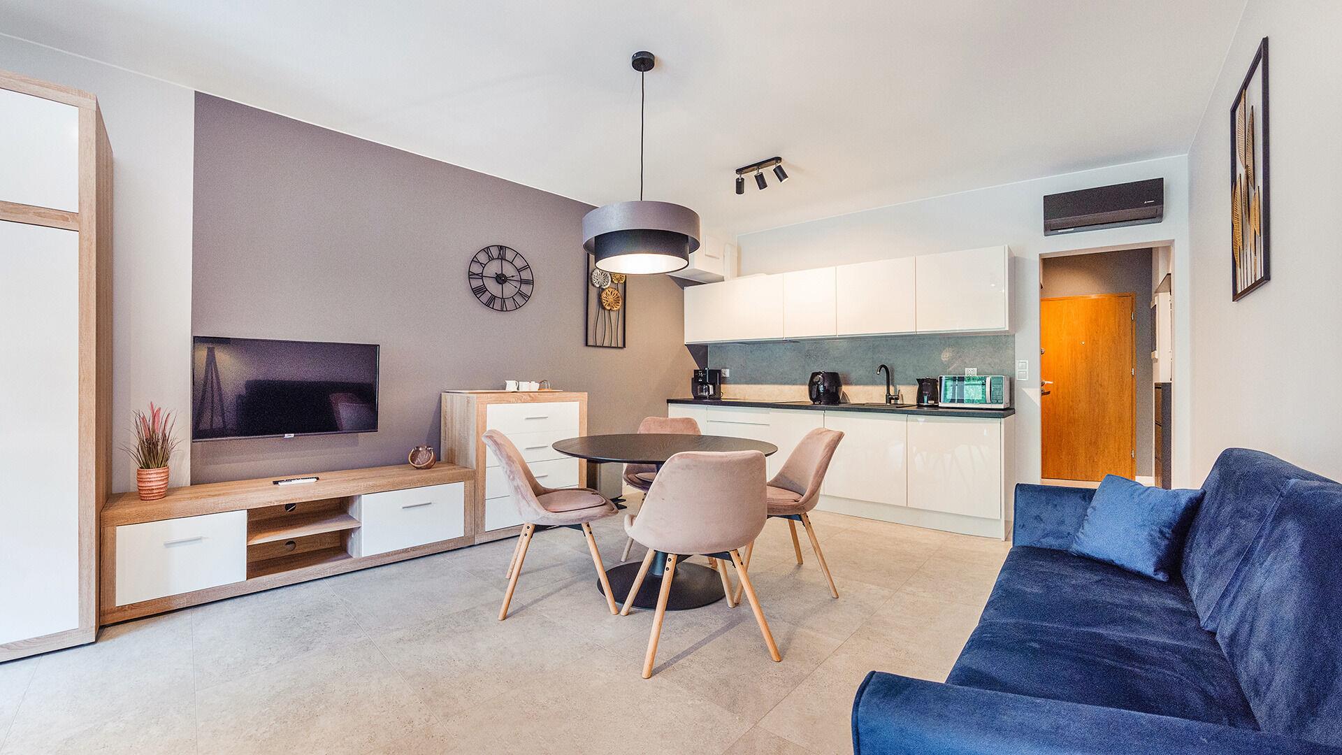 Zu den gewählten Apartments darf man mit dem Hund ankommen. Die zusätzlichen Kosten des Aufenthalts mit einem vierbeinigen Freund betragen 100 PLN (Einzelgebühr). Die Gäste, die den Aufenthalt mit dem Hund planen, bitten wir um eine frühere Kontaktaufnahme mit unserem Service im lokalen Büro.
