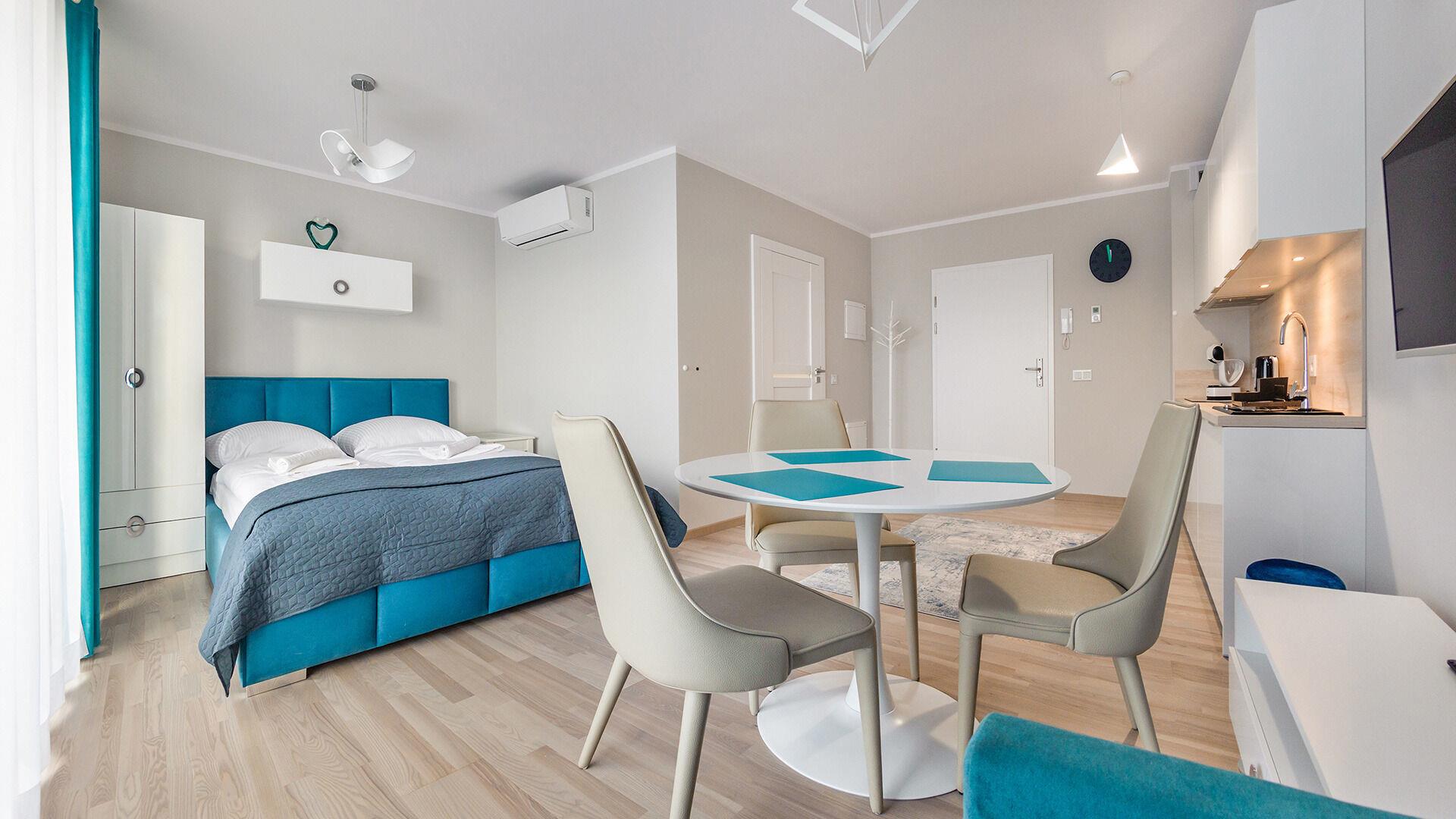 Zu den gewählten Apartments darf man mit dem Hund ankommen. Die zusätzlichen Kosten des Aufenthalts mit einem vierbeinigen Freund betragen 100 PLN (Einzelgebühr). Die Gäste, die den Aufenthalt mit dem Hund planen, bitten wir um eine frühere Kontaktaufnahme mit unserem Service im lokalen Büro.