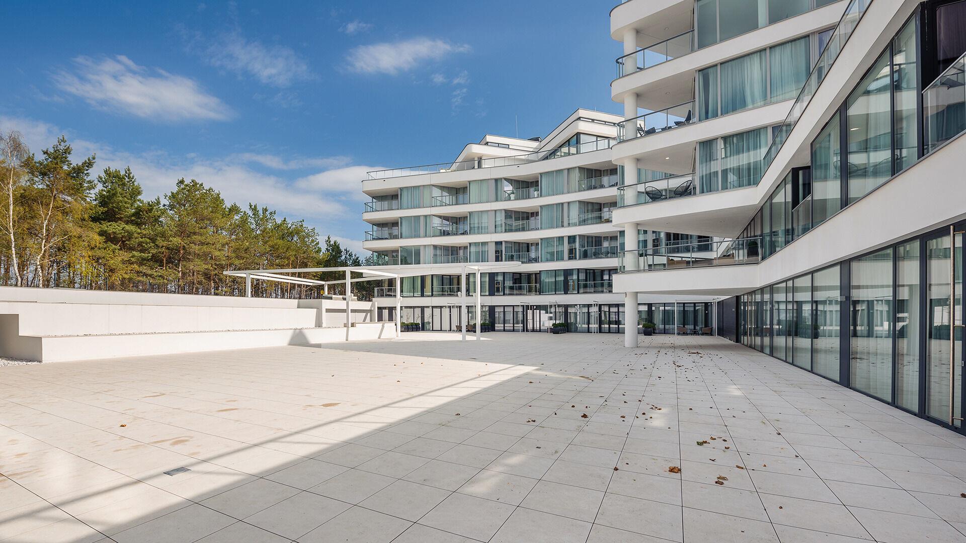 Das Gebäude bietet den Bewohnern einen direkten Zugang zum Strand.