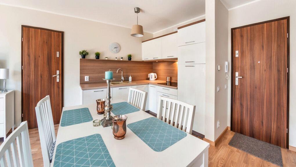 Zu den gewählten Apartments darf man mit dem Hund ankommen. Die zusätzlichen Kosten des Aufenthalts mit einem vierbeinigen Freund betragen 100 PLN (Einzelgebühr). Die Gäste, die den Aufenthalt mit dem Hund planen, bitten wir um eine frühere Kontaktaufnahme mit unserem Service im lokalen Büro.