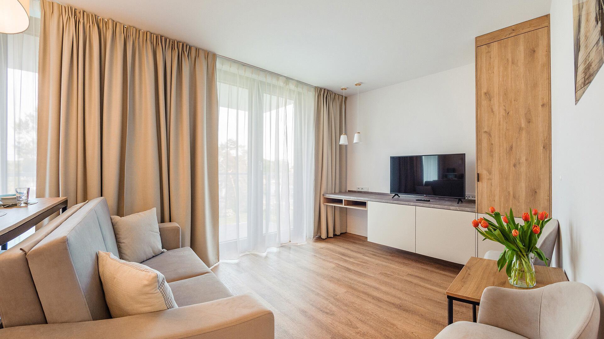 Zu den gewählten Apartments darf man mit dem Hund ankommen. Die zusätzlichen Kosten des Aufenthalts mit einem vierbeinigen Freund betragen 100 PLN (Einzelgebühr). Die Gäste, die den Aufenthalt mit dem Hund planen, bitten wir um eine frühere Kontaktaufnahme mit unserem Service im lokalen Büro.