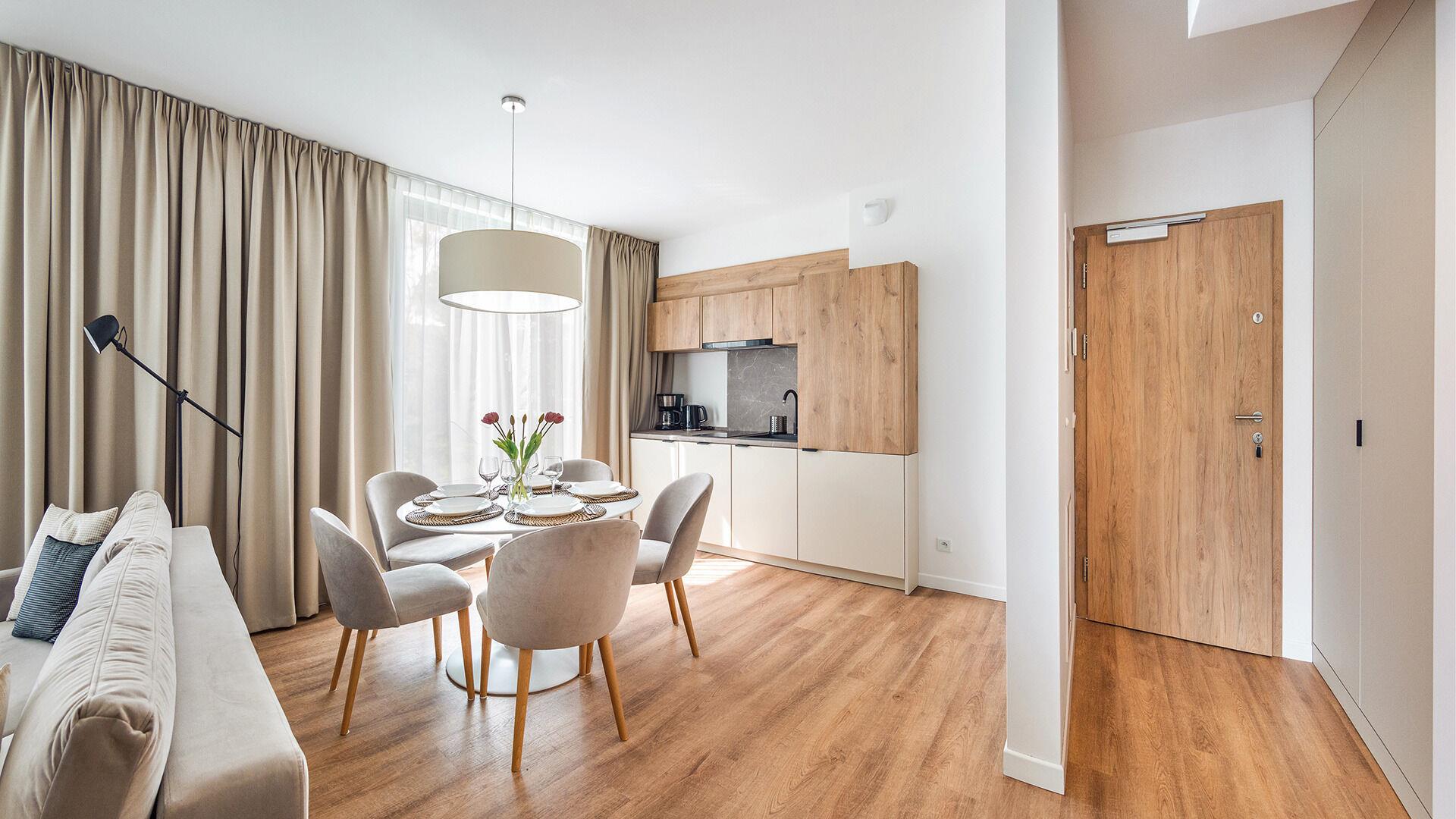 Zu den gewählten Apartments darf man mit dem Hund ankommen. Die zusätzlichen Kosten des Aufenthalts mit einem vierbeinigen Freund betragen 100 PLN (Einzelgebühr). Die Gäste, die den Aufenthalt mit dem Hund planen, bitten wir um eine frühere Kontaktaufnahme mit unserem Service im lokalen Büro.