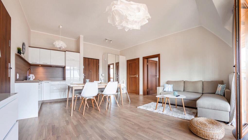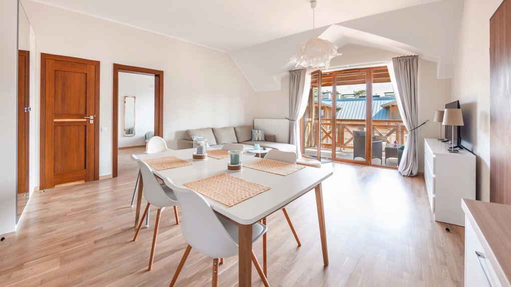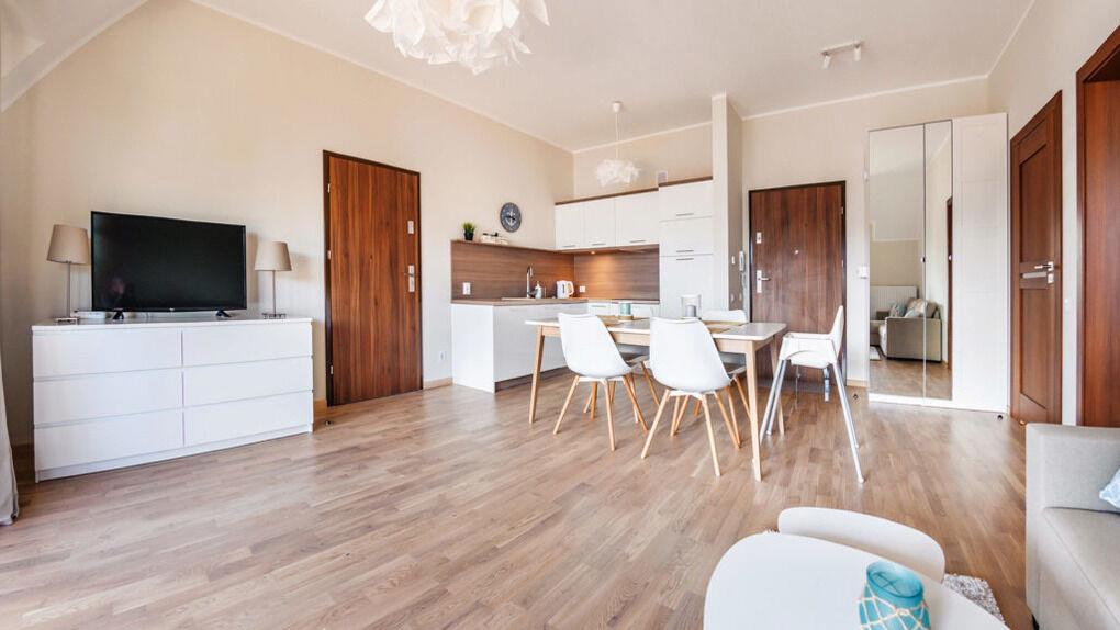 Zu den gewählten Apartments darf man mit dem Hund ankommen. Die zusätzlichen Kosten des Aufenthalts mit einem vierbeinigen Freund betragen 100 PLN (Einzelgebühr). Die Gäste, die den Aufenthalt mit dem Hund planen, bitten wir um eine frühere Kontaktaufnahme mit unserem Service im lokalen Büro.