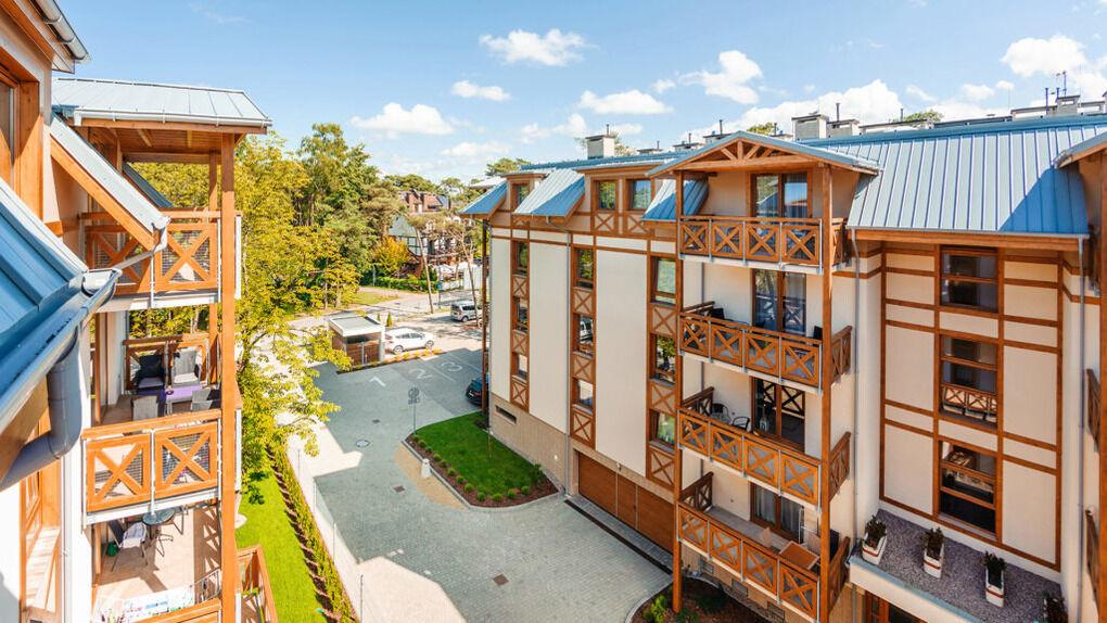 Die Apartamenty Rezydencja Rodzinna befinden sich 250 Meter vom Strand entfernt in einer ruhigen Gegend eines Pinienparks.