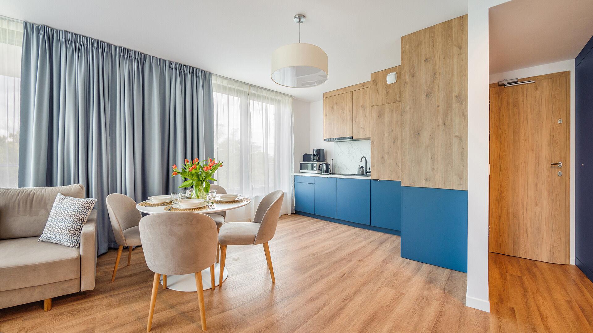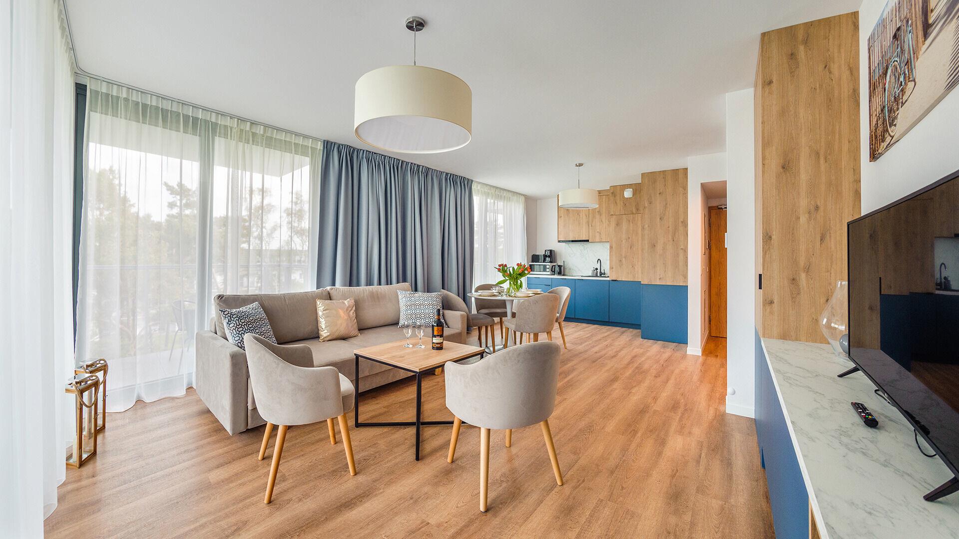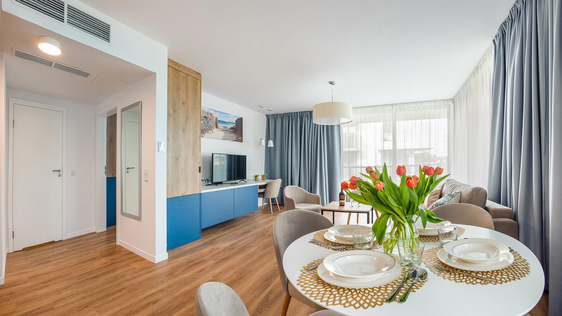 Zu den gewählten Apartments darf man mit dem Hund ankommen. Die zusätzlichen Kosten des Aufenthalts mit einem vierbeinigen Freund betragen 100 PLN (Einzelgebühr). Die Gäste, die den Aufenthalt mit dem Hund planen, bitten wir um eine frühere Kontaktaufnahme mit unserem Service im lokalen Büro.