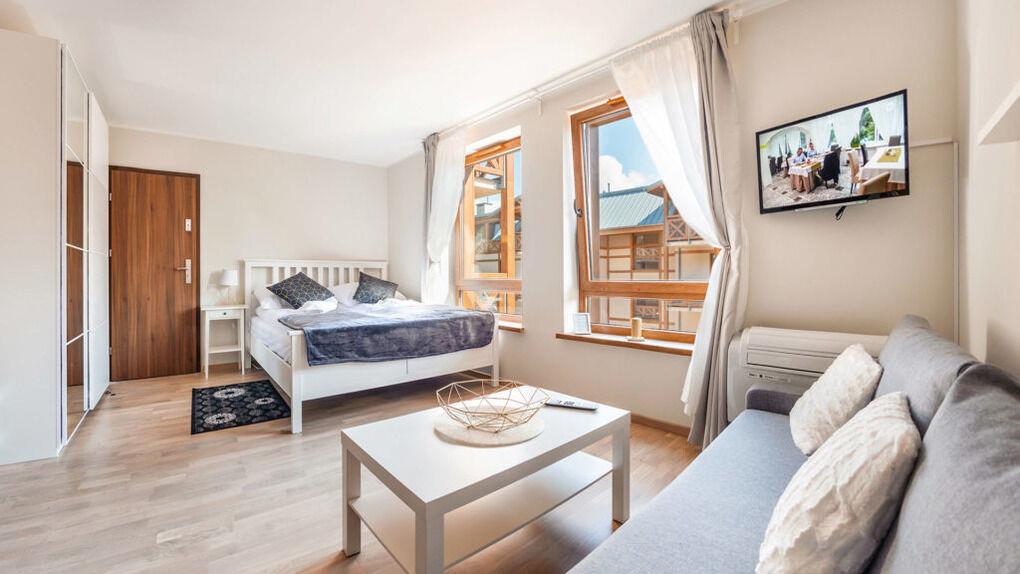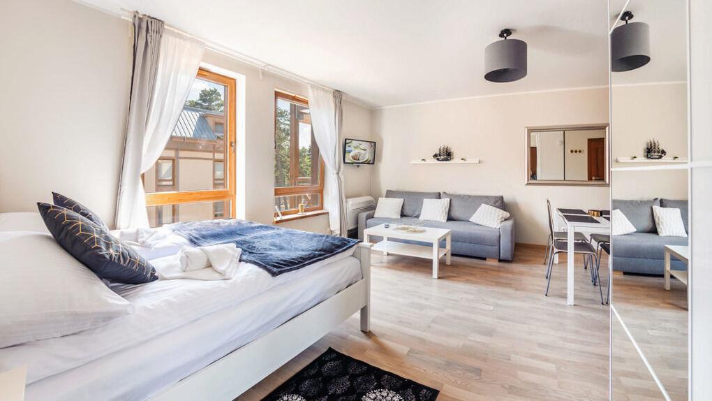 Zu den gewählten Apartments darf man mit dem Hund ankommen. Die zusätzlichen Kosten des Aufenthalts mit einem vierbeinigen Freund betragen 100 PLN (Einzelgebühr). Die Gäste, die den Aufenthalt mit dem Hund planen, bitten wir um eine frühere Kontaktaufnahme mit unserem Service im lokalen Büro.
