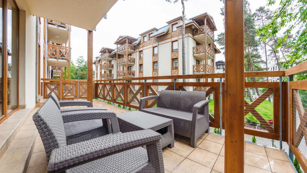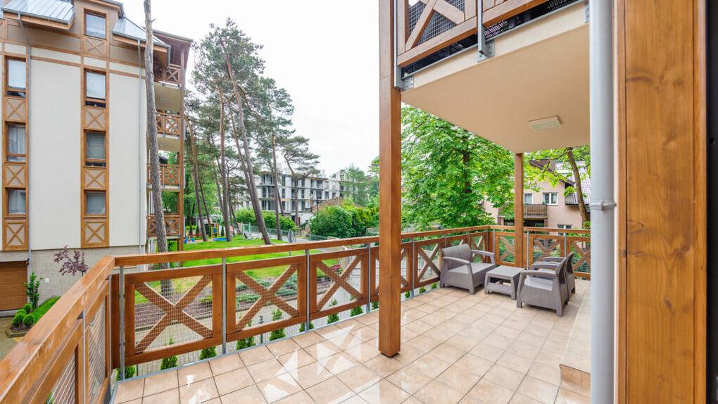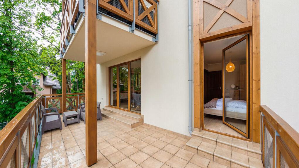 Die Apartamenty Rezydencja Rodzinna befinden sich 250 Meter vom Strand entfernt in einer ruhigen Gegend eines Pinienparks.