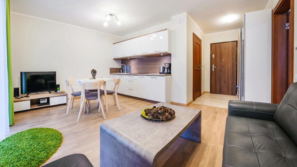 Zu den gewählten Apartments darf man mit dem Hund ankommen. Die zusätzlichen Kosten des Aufenthalts mit einem vierbeinigen Freund betragen 100 PLN (Einzelgebühr). Die Gäste, die den Aufenthalt mit dem Hund planen, bitten wir um eine frühere Kontaktaufnahme mit unserem Service im lokalen Büro.
