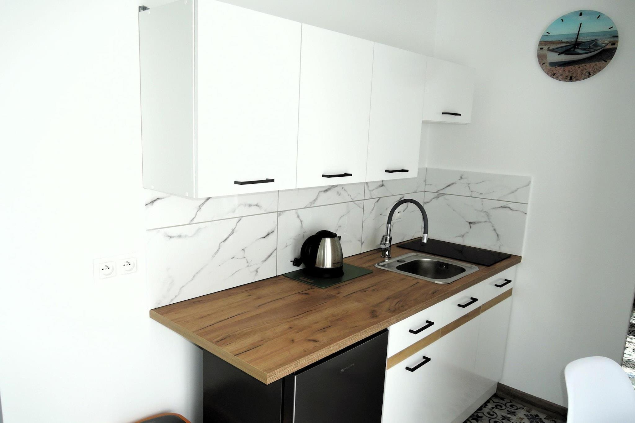 Eine komfortable Ferienwohnung in Mrzezyno genießt eine einzigartige Lage direkt an den Sandstränden, umgeben von üppigen Wäldern, was sie zu einem idealen Ort für Entspannung, Erholung und Regeneration macht. Im Herzen des Ortes gelegen, ist es ein ausgezeichneter Ausgangspunkt für die Erkundung der Stadt mit ihren Sommerattraktionen und malerischen Waldwegen und Straßen, die zu Spaziergängen und Fahrradausflügen inmitten der Natur einladen. Das Apartment bietet komfortable Aufenthaltsbedingungen und verfügt über ein geräumiges Wohnzimmer mit bequemen Betten, das mit einer ausgestatteten Küche mit Kühlschrank und Kaffeemaschine sowie einem Badezimmer mit Dusche verbunden ist. Ein zusätzlicher Vorteil ist der Balkon mit malerischer Aussicht, perfekt für ein morgendliches Frühstück im Freien oder entspannte Abendmomente. Bettwäsche ist im Apartment vorhanden. Den Gästen stehen außerdem ein garantierter Parkplatz und Breitband-Internet zur Verfügung. Mrzezyno ist ein Ferienort und Fischereihafen 12 km westlich von Kolberg, an der Mündung des Flusses Rega. Die Stadt liegt im Trzebiatowsko-Kolobrzeg-Küstengürtel, einem besonderen Schutzgebiet des Natura-2000-Programms, das ein gesundes Mikroklima schafft. Der schöne, sandige und saubere Strand in Mrzezyno mit einem Streifen Kiefernwald wird jeden zufrieden stellen, der sich abseits der Hektik der Stadt entspannen möchte. Mrzezyno ist einer der wenigen Strände in Polen mit der „Blauen Flagge“, einem Symbol für den hohen Standard des Strandes, die höchste Wasserqualität und das höchste Maß an Sicherheit (eine große Anzahl gut ausgebildeter Rettungsschwimmer). Die Lage von Mrzezyno macht es zu einem wahren Paradies für Angler. Vom Meer getrennt durch einen breiten, schönen Strand und einen mit Pinien bewachsenen Dünenstreifen. Hier herrscht ein Meeresmikroklima, das durch geringe Temperaturschwankungen und einen hohen Jodgehalt gekennzeichnet ist. Die Stadt bezieht ihr Wasser aus tiefen Quellen. Hier herrscht ein spezifisches Mikroklima, das durch einen erheblichen Gehalt an Meersalz und Jod gekennzeichnet ist, die das sogenannte erzeugen Aerosole haben eine heilende Wirkung auf die Atemwege und Beschwerden